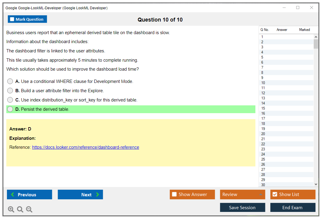 Sample questions for the Google LookML Developer exam can be found on the official Google Cloud certification website or through various exam preparation resources and practice tests.