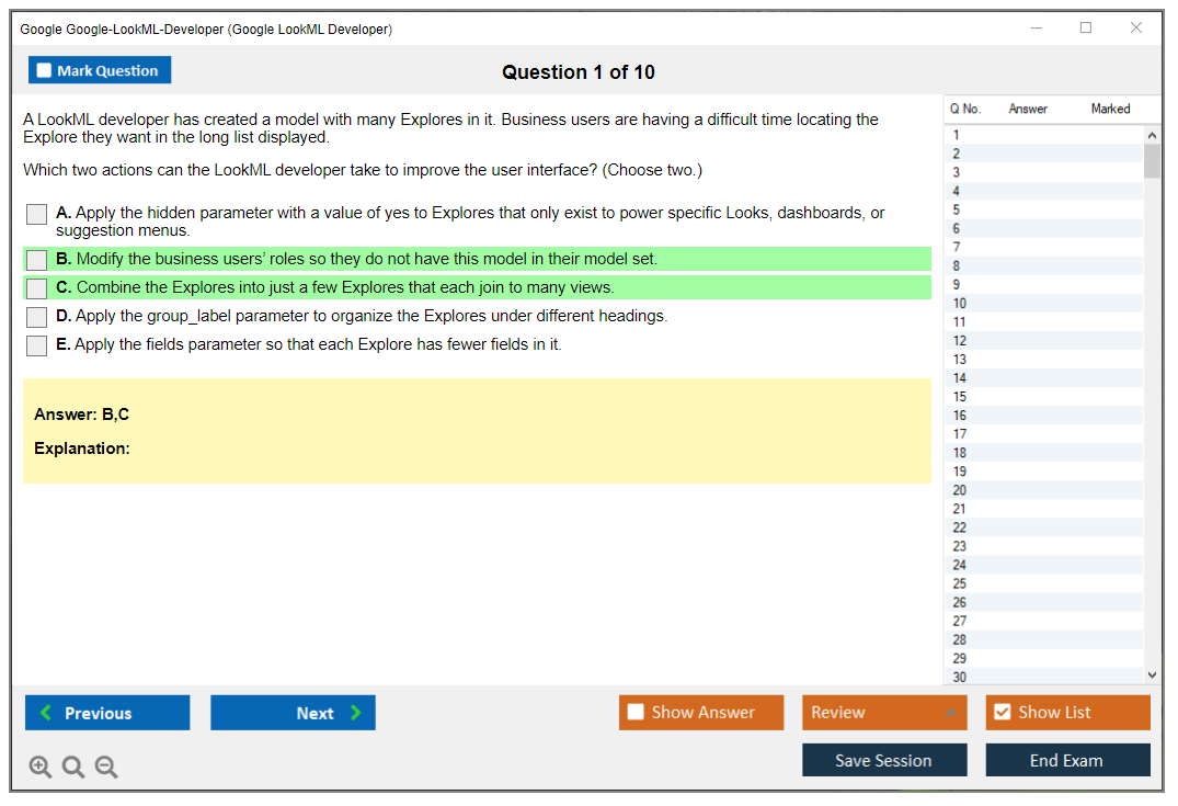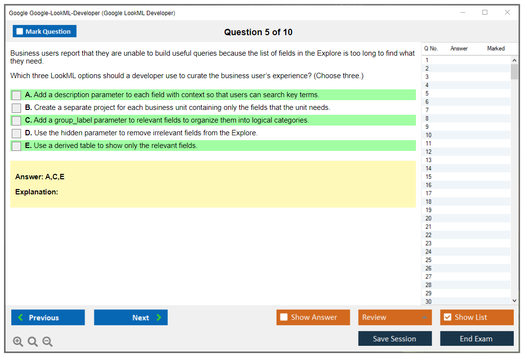What are the Sample Questions of Google Google-LookML-Developer Exam?