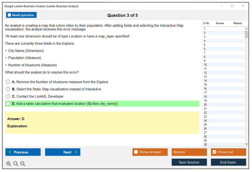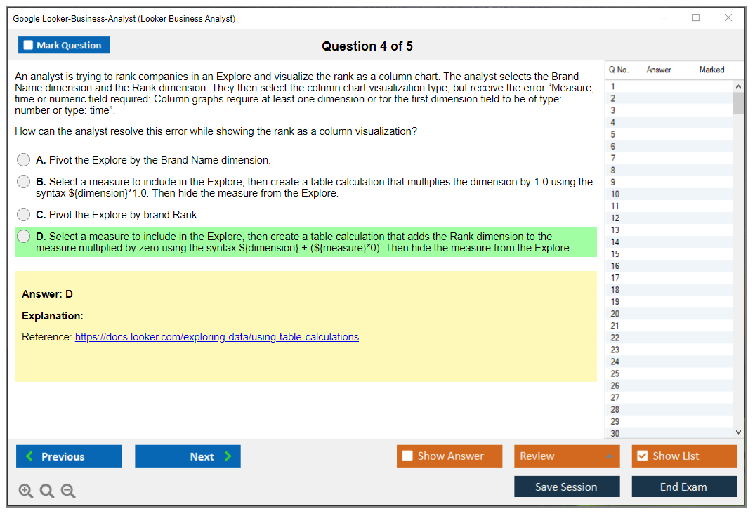 Sample questions for the Google Looker-Business-Analyst Exam can be found on the official Google Cloud certification website and other study resources.