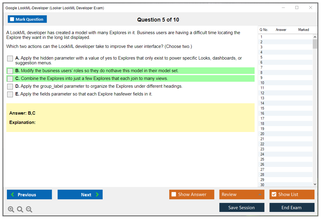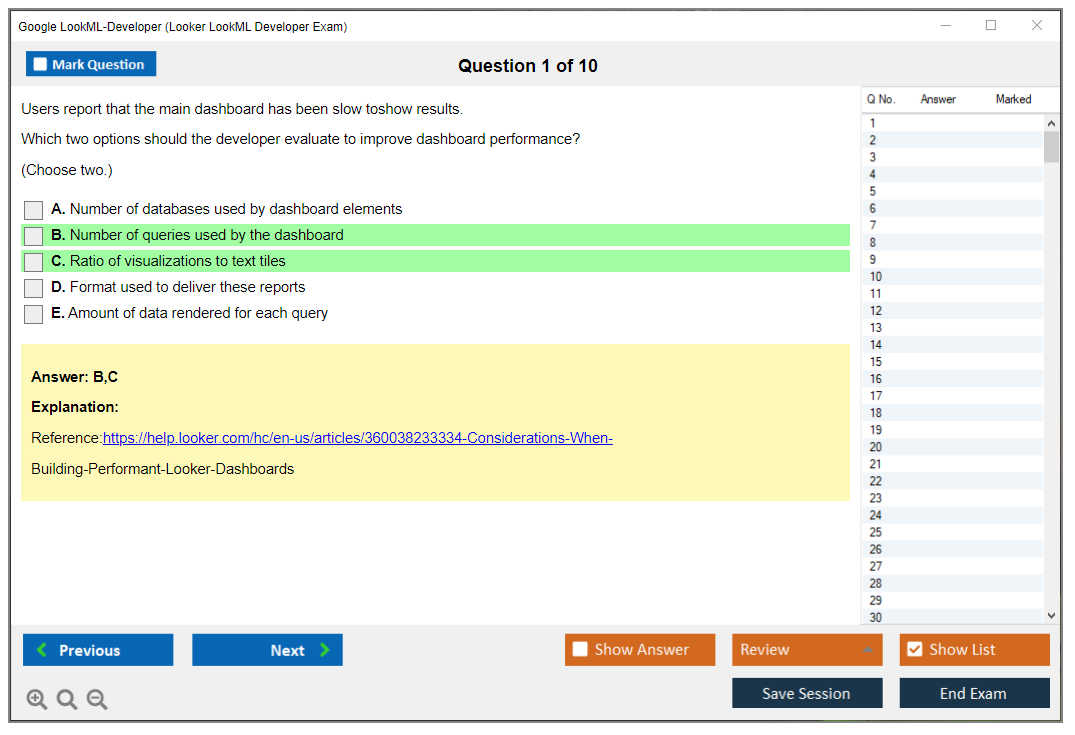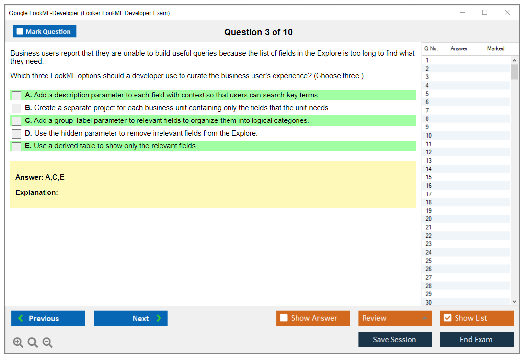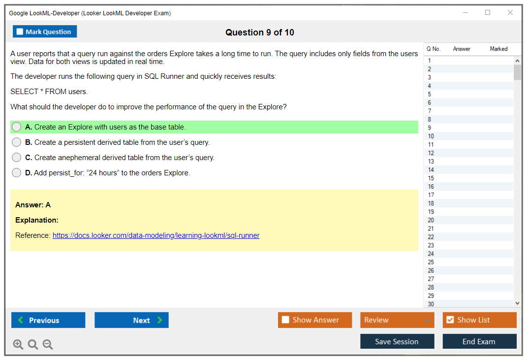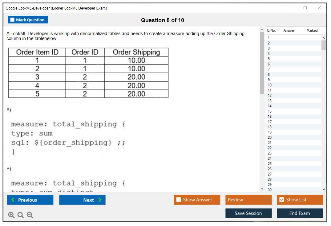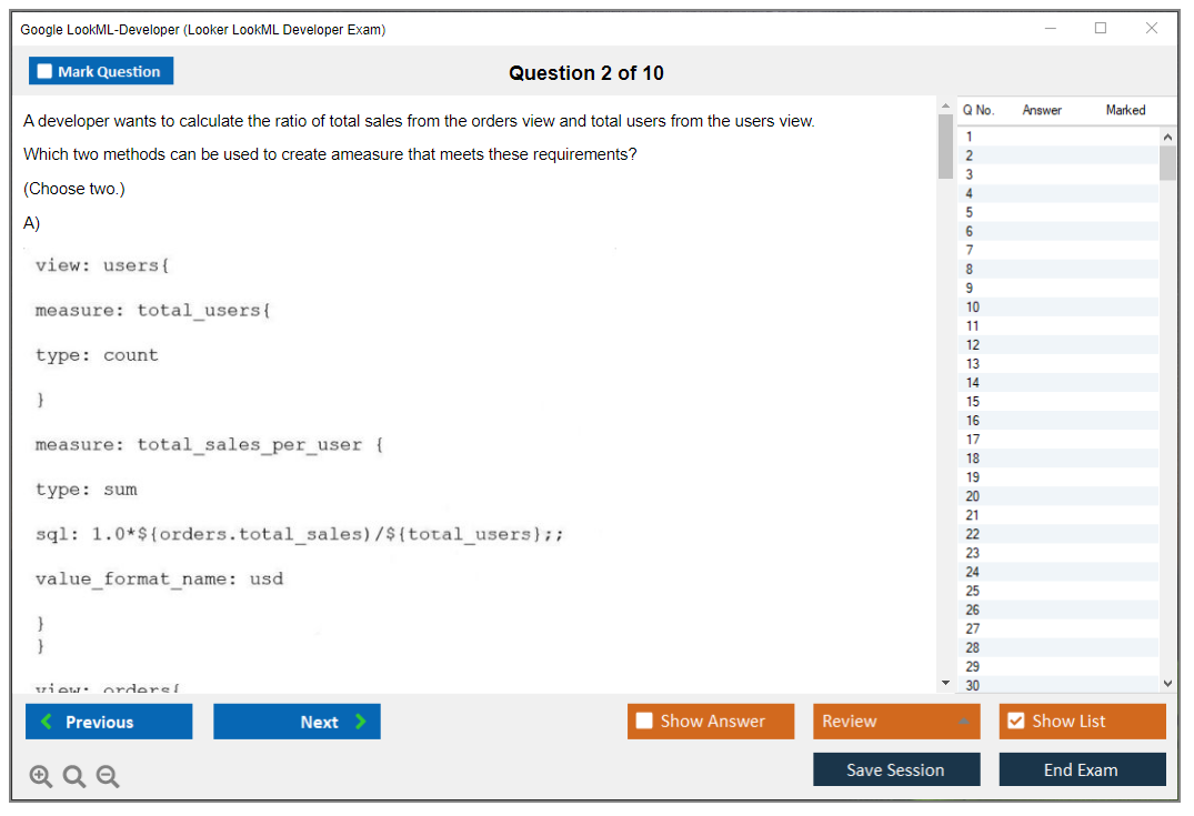 Sample questions for the Google LookML-Developer Exam can be found on the official Google Cloud certification website or through Looker community forums and study guides.