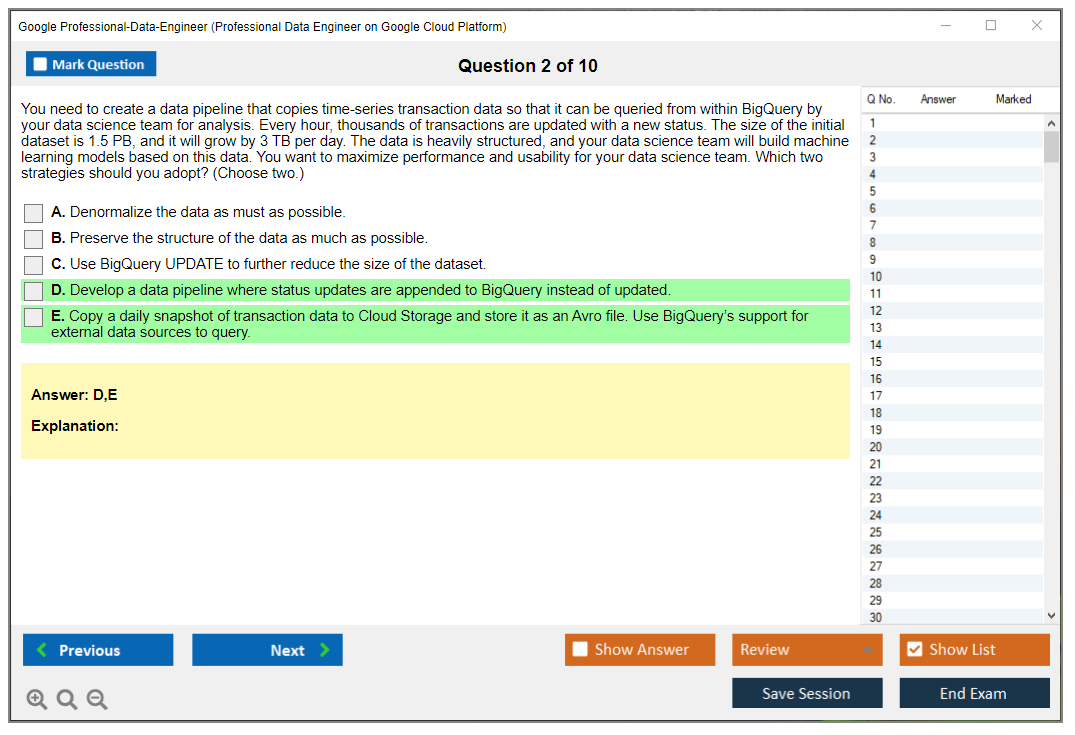 What are the Sample Questions of Google Professional-Data-Engineer Exam?