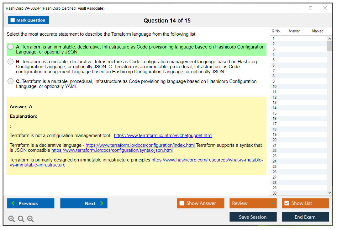 You can take the HashiCorp VA-002-P Exam online through a remote proctoring service, allowing you to complete the exam from the comfort of your home or office.