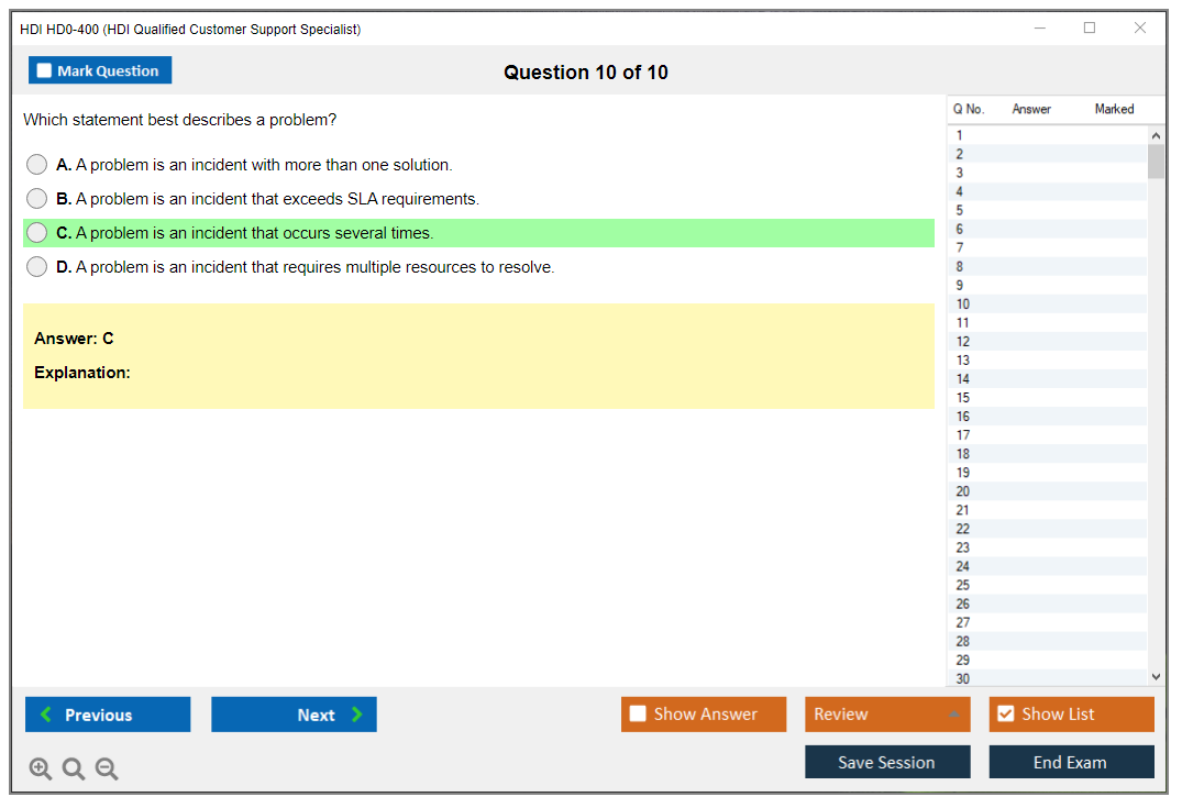 The HDI HD0-400 (HDI Qualified Customer Support Specialist) exam is designed to validate the skills and knowledge required for customer support professionals. It focuses on the essential skills needed to provide effective customer support, including communication, problem-solving, and troubleshooting.