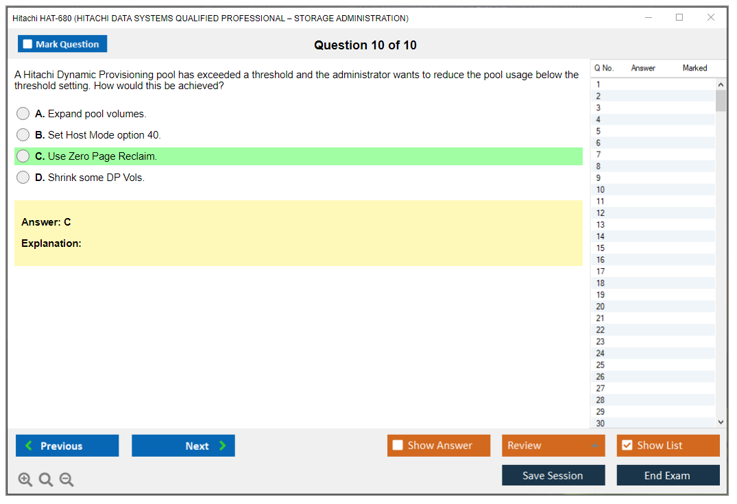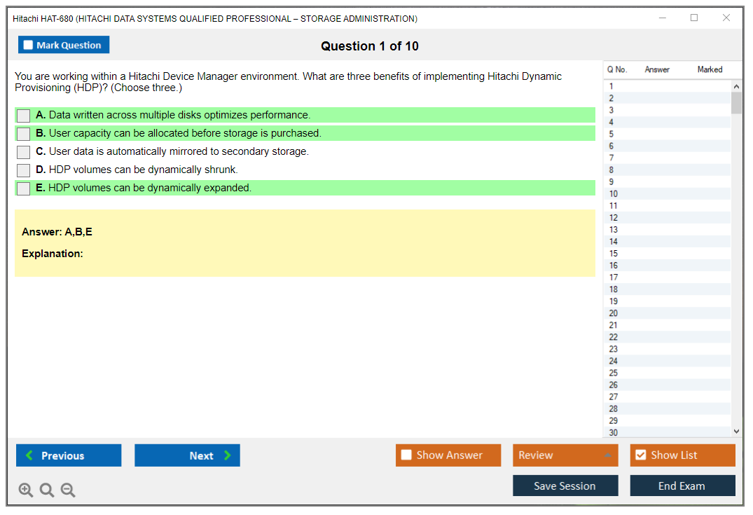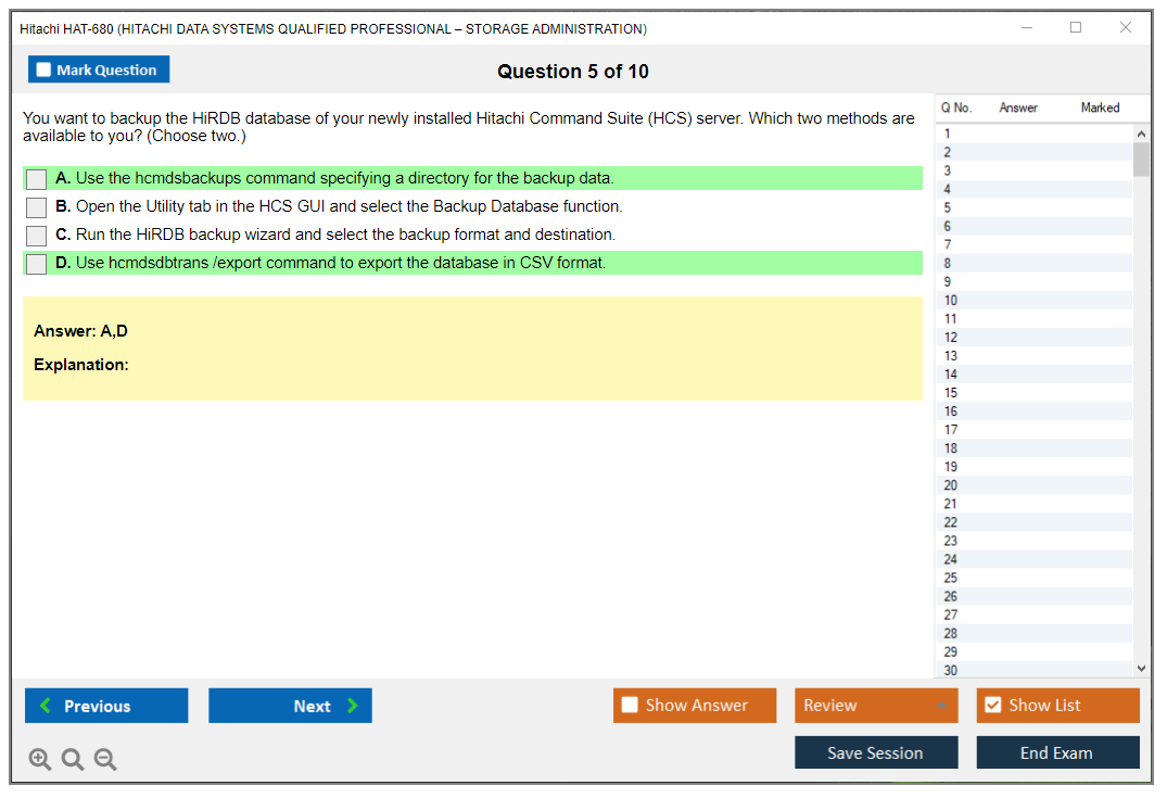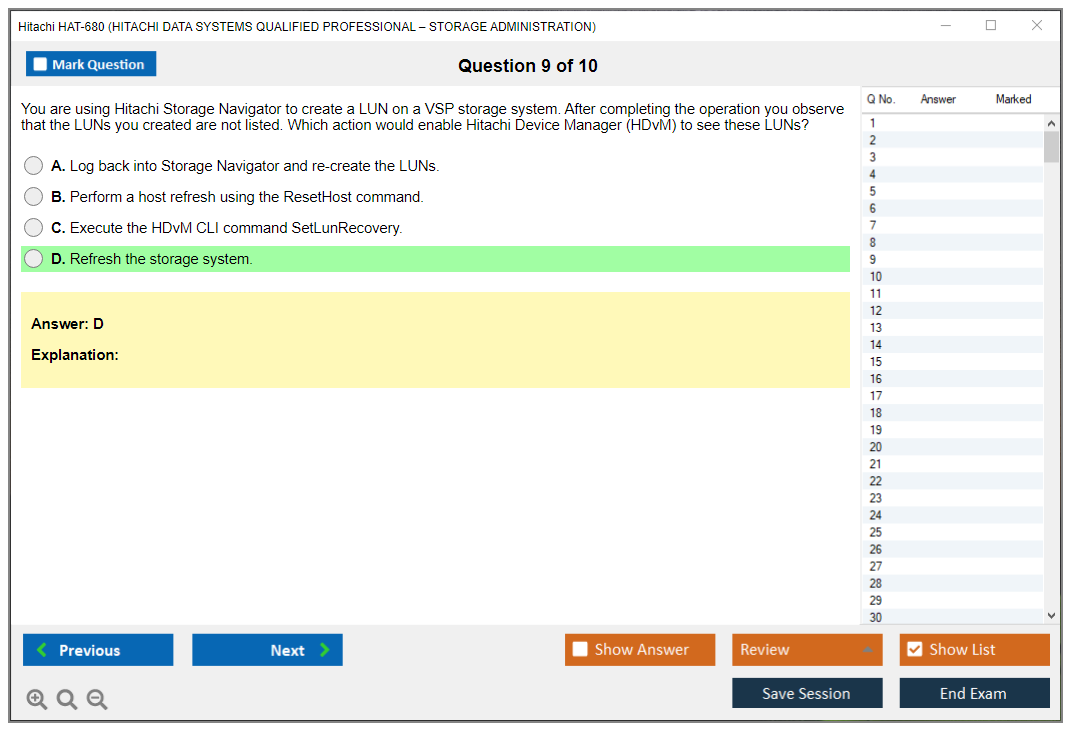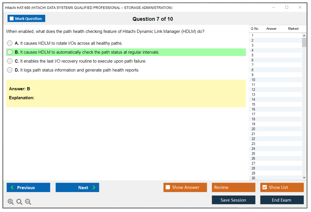 The Hitachi HAT-680 (Hitachi Data Systems Qualified Professional – Storage Administration) exam is designed to validate the skills and knowledge of professionals in managing and administering Hitachi storage solutions. It covers various aspects of storage management including configuration, performance tuning, and troubleshooting.