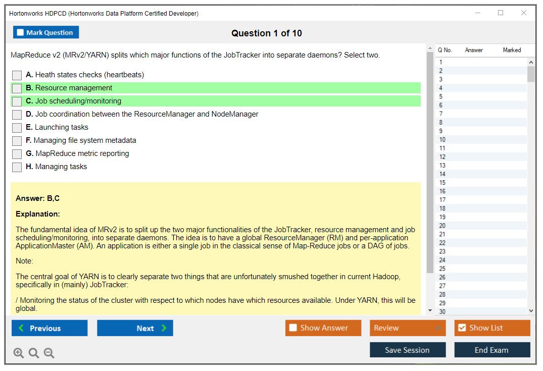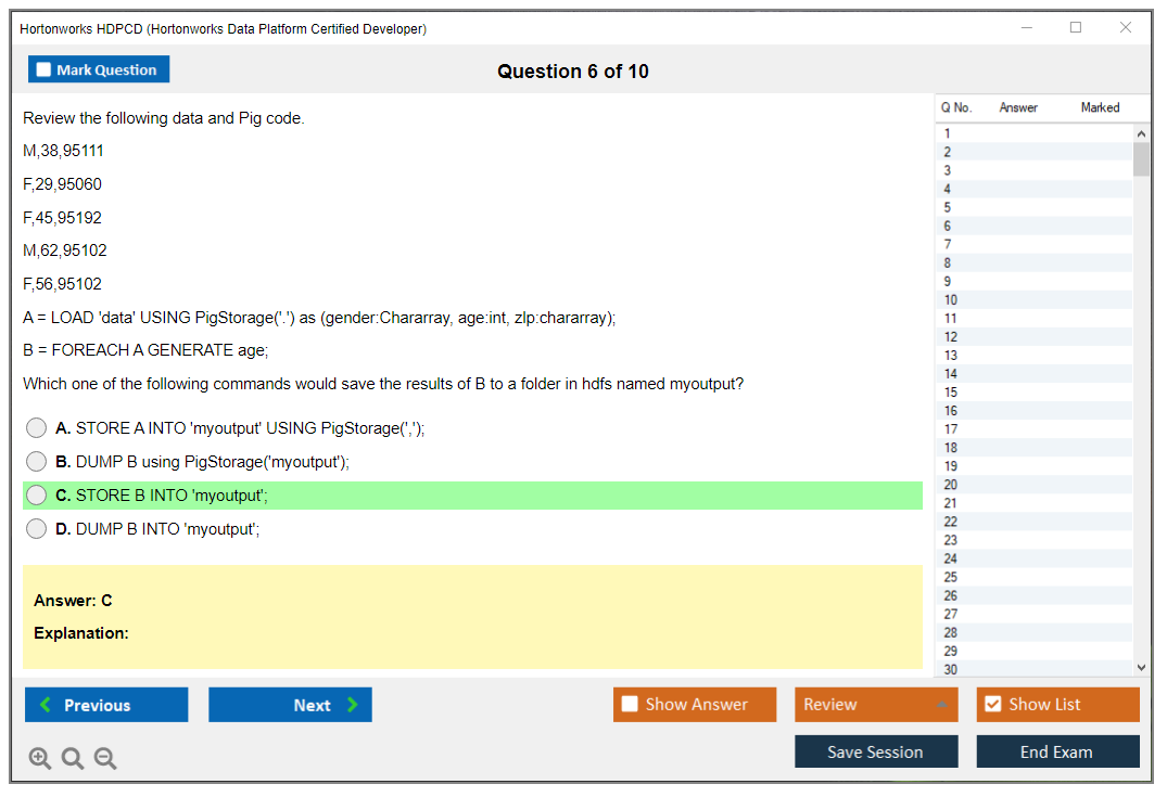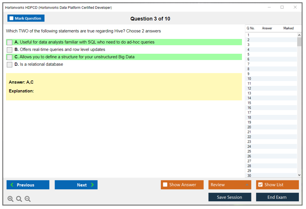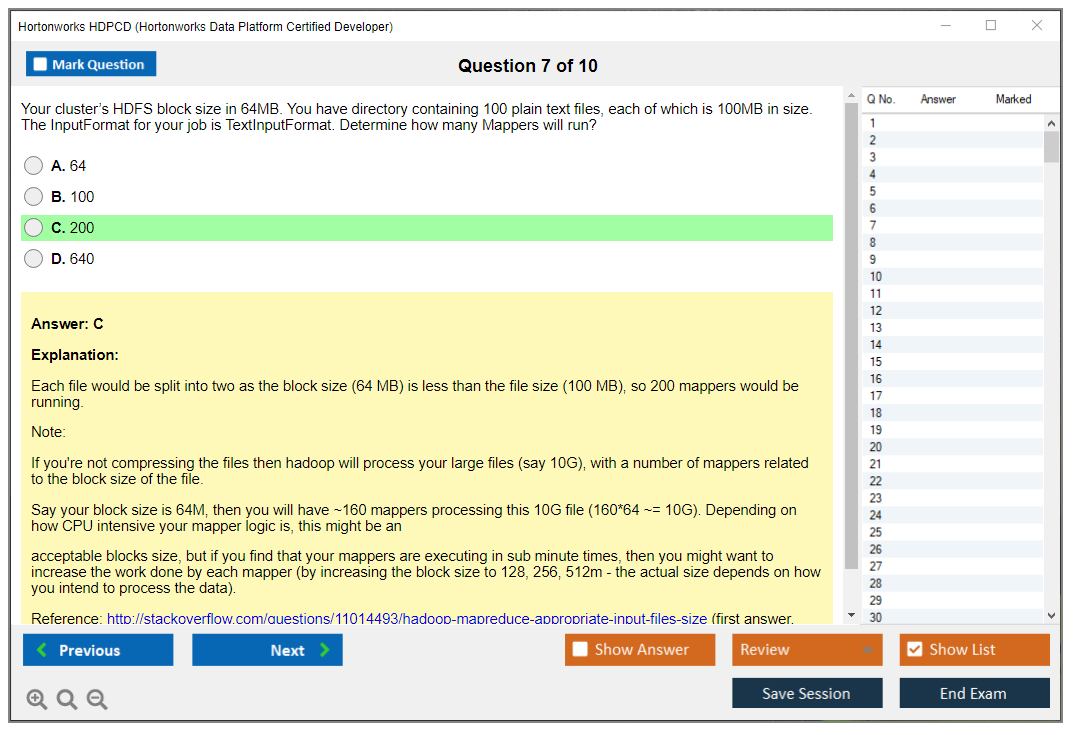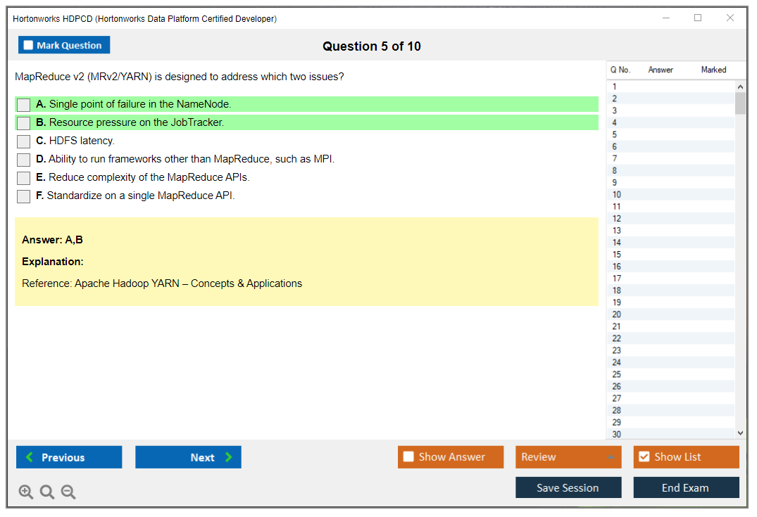 The Hortonworks HDPCD (Hortonworks Data Platform Certified Developer) Exam is a certification exam designed to validate the skills and knowledge of developers working with the Hortonworks Data Platform (HDP). The exam focuses on the ability to develop and implement applications on the HDP using various tools and technologies.