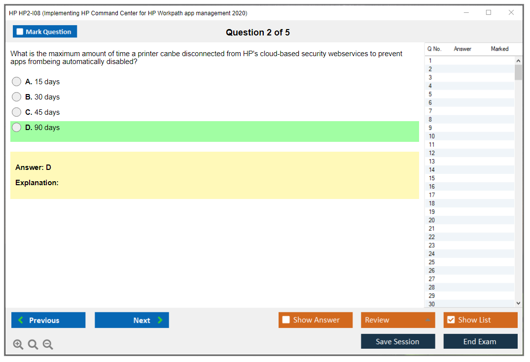 The HP HP2-I08 exam covers topics such as HP Command Center setup and configuration, HP Workpath app deployment, troubleshooting, security, and best practices for app management.