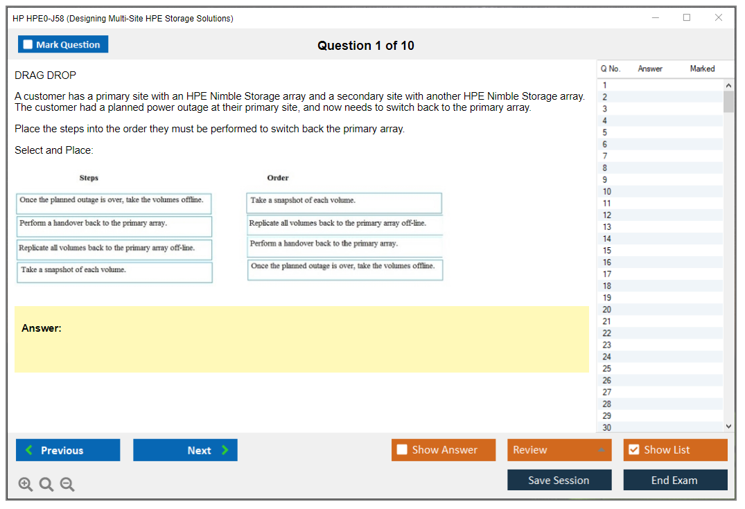 The HP HPE0-J58 (Designing Multi-Site HPE Storage Solutions) Exam is designed to validate the candidate's knowledge and skills in designing and implementing HPE storage solutions across multiple sites. It includes understanding storage technologies, deployment methodologies, and best practices for ensuring data availability and disaster recovery.