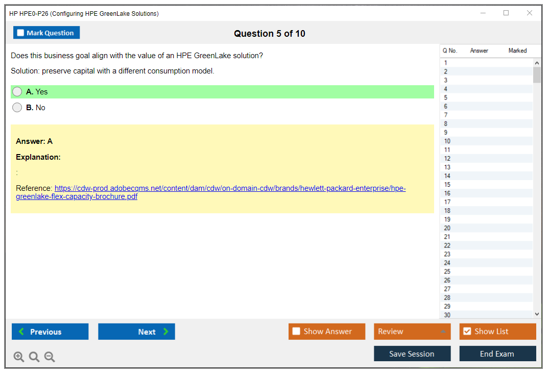 The HP HPE0-P26 (Configuring HPE GreenLake Solutions) Exam is designed to validate the knowledge and skills necessary to configure HPE GreenLake solutions. It assesses a candidate's ability to understand and implement HPE GreenLake services, which are a suite of cloud services delivered by Hewlett Packard Enterprise.