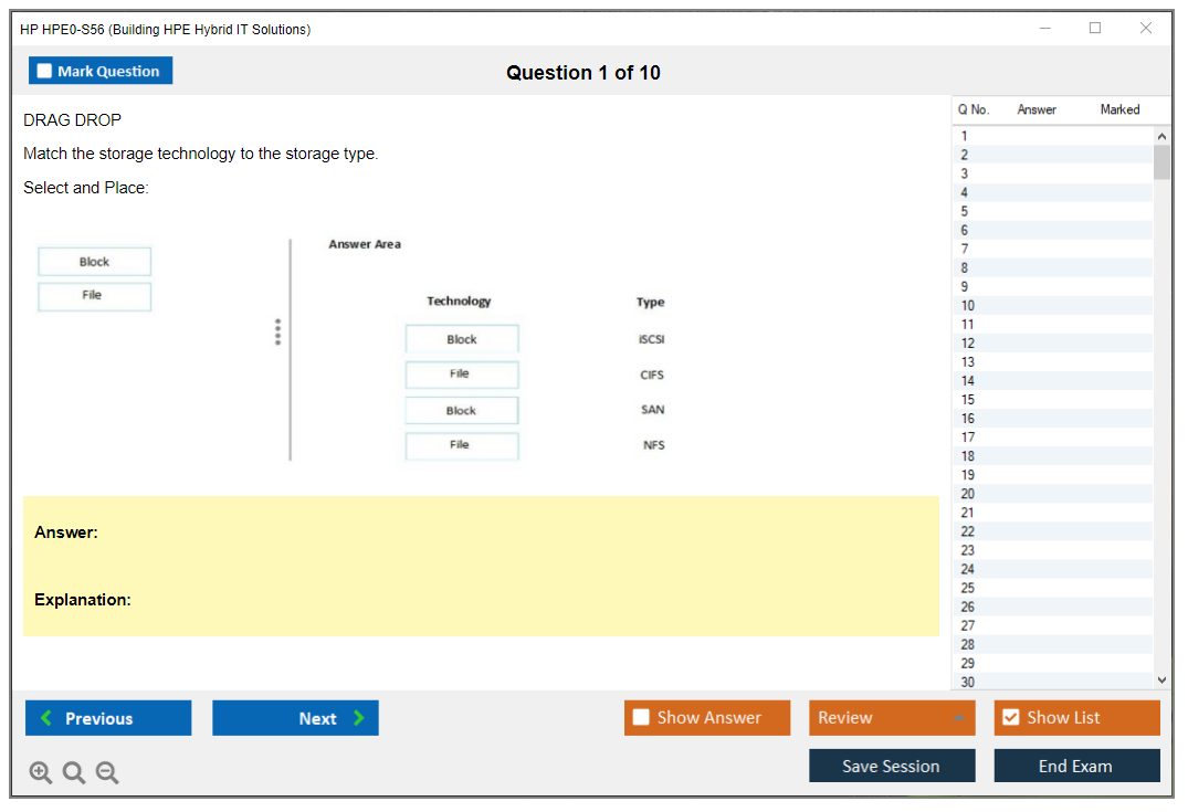 The question format of the HP HPE0-S56 Exam includes multiple-choice questions, drag-and-drop, and scenario-based questions.