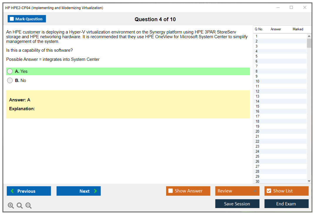 The HP HPE2-CP04 (Implementing and Modernizing Virtualization) Exam is designed to test the knowledge and skills required for implementing and modernizing virtualization technologies using HP solutions.