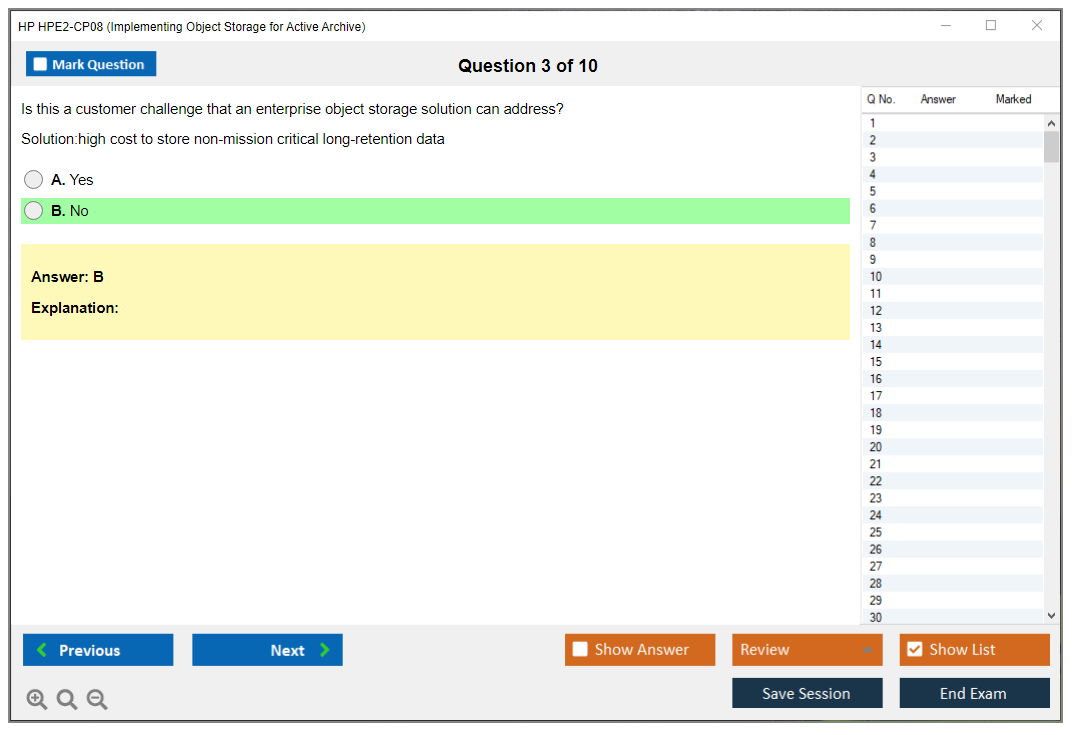 The HP HPE2-CP08 (Implementing Object Storage for Active Archive) Exam is designed to validate the knowledge and skills of IT professionals in implementing and managing object storage solutions for active archiving. The exam focuses on various aspects of object storage technology, including architecture, deployment, and management.