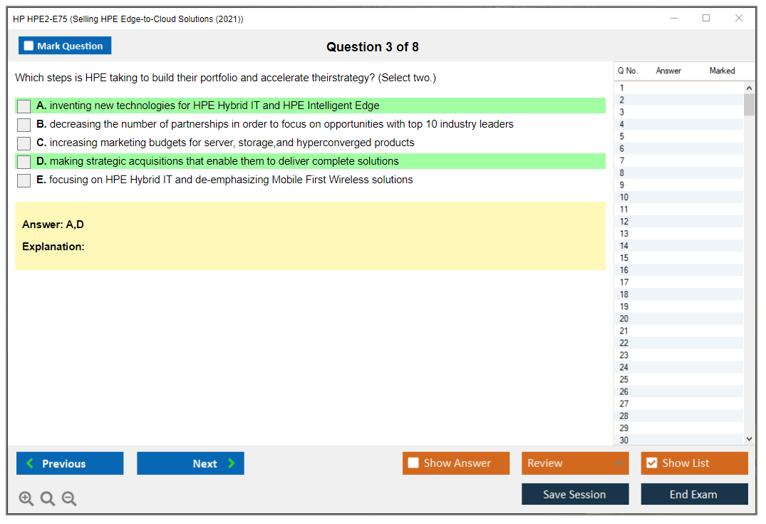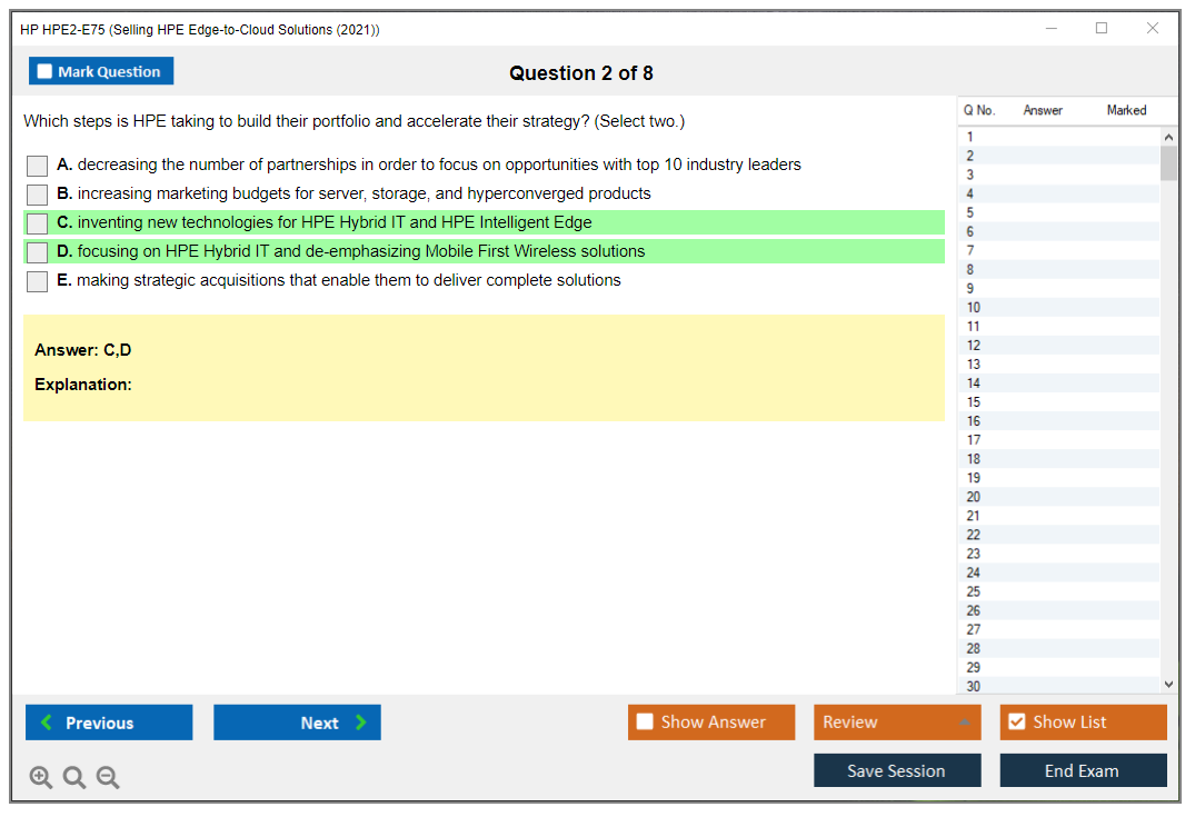 Note: HP HPE2-E75 (Selling HPE Edge-to-Cloud Solutions (2021)) will not receive any new updates.