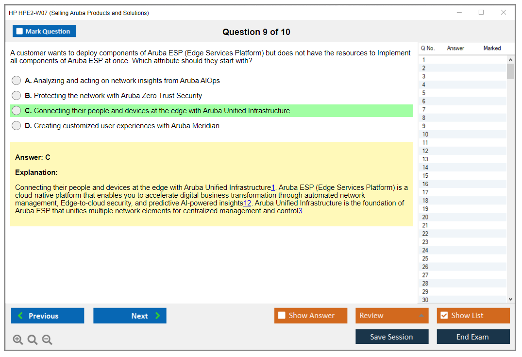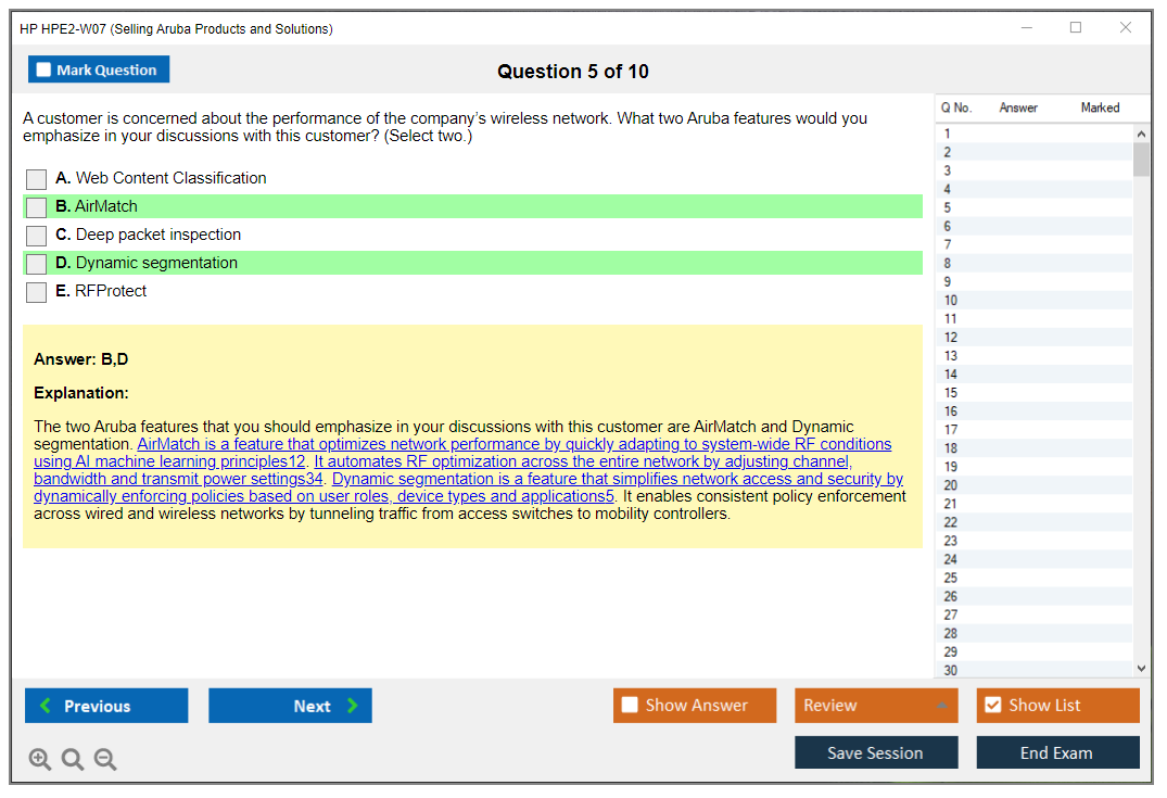 The HP HPE2-W07 exam focuses on assessing the candidate's ability to understand and sell Aruba's networking solutions. It covers various aspects of Aruba products, including their features, benefits, and how they meet customer needs.