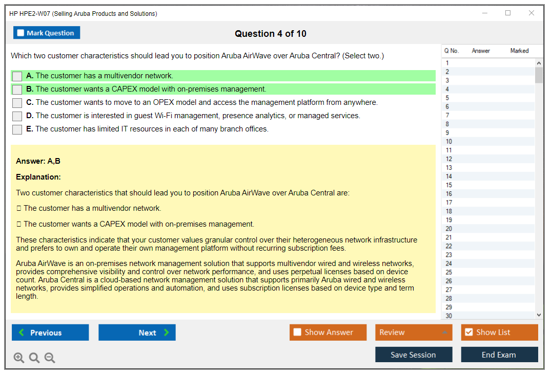 What are the Sample Questions of HP HPE2-W07 Exam?