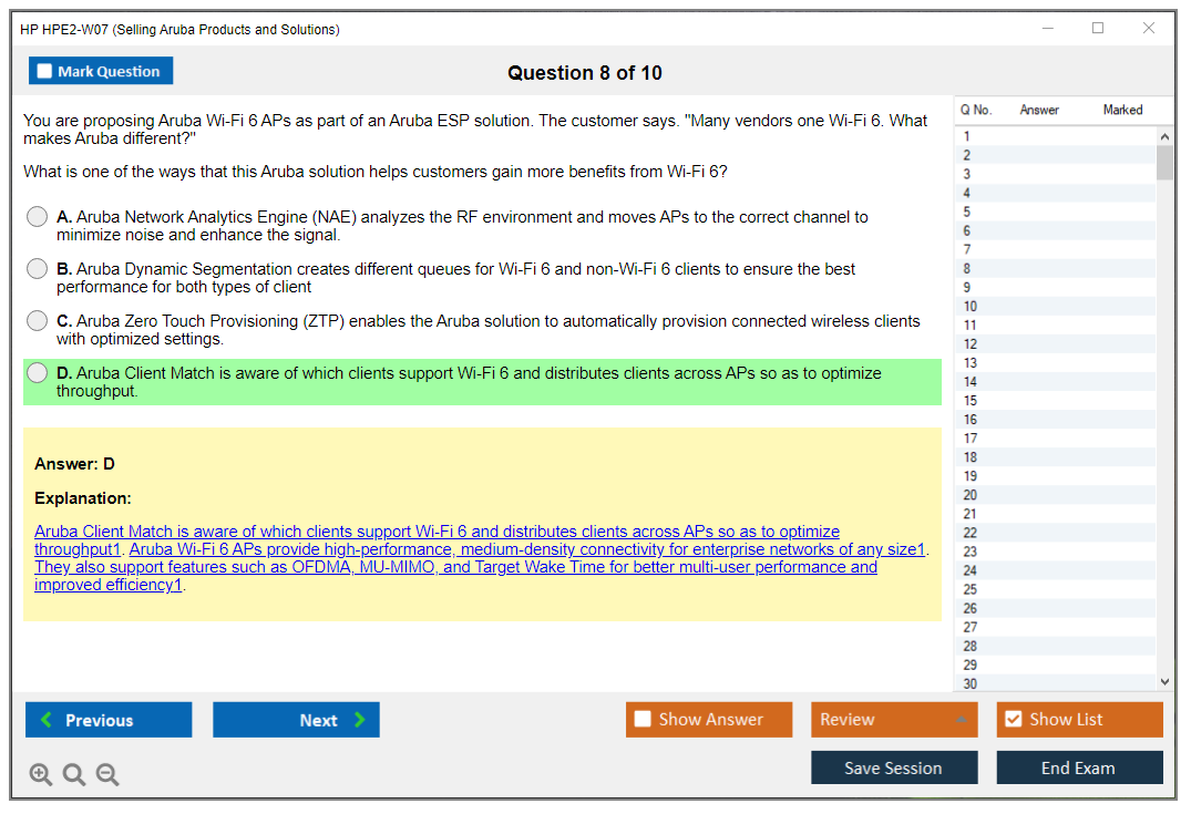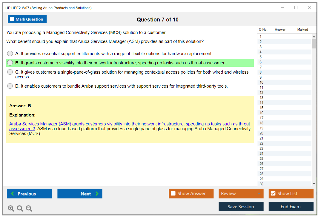 The HP HPE2-W07 exam is part of the Aruba Sales Specialist certification track, which is designed to validate the skills required to sell Aruba networking solutions effectively.