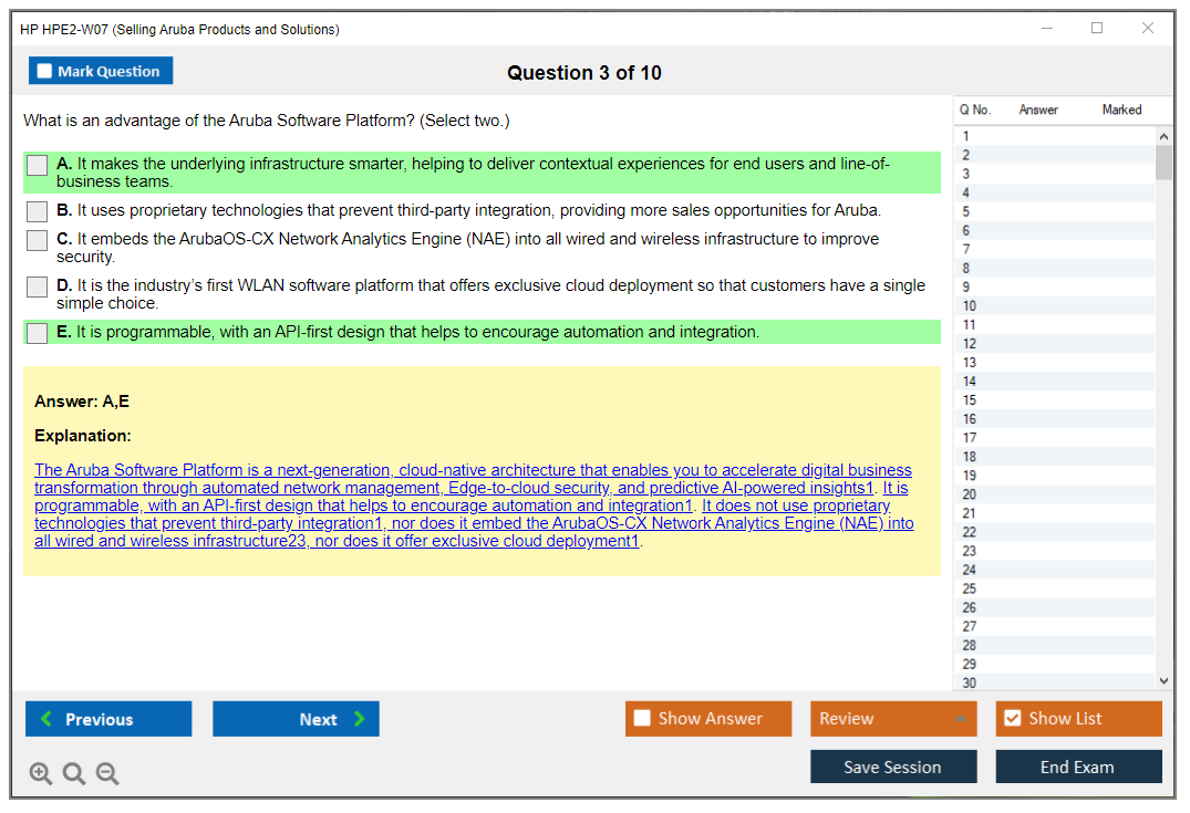 The HP HPE2-W07 exam, also known as Selling Aruba Products and Solutions, is designed to test the candidate's knowledge and skills in selling Aruba products and solutions effectively.