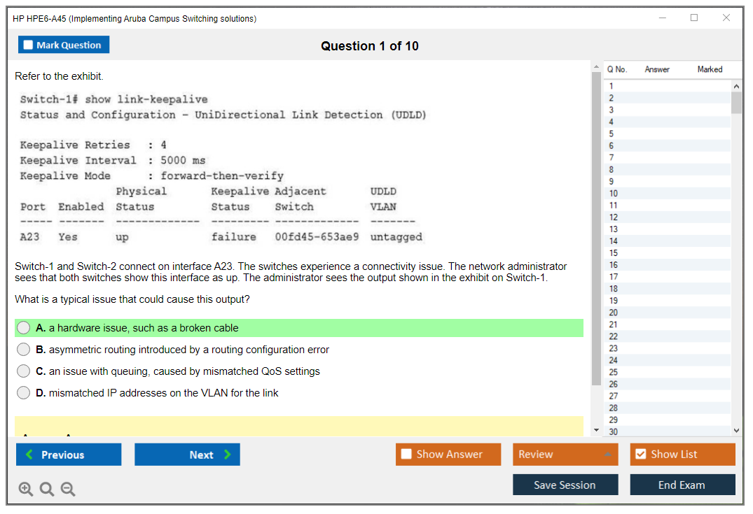 The HP HPE6-A45 exam is a certification test for IT professionals who want to demonstrate their expertise in implementing Aruba Campus Switching solutions. It covers a wide range of topics, including network design, configuration, troubleshooting, and security.