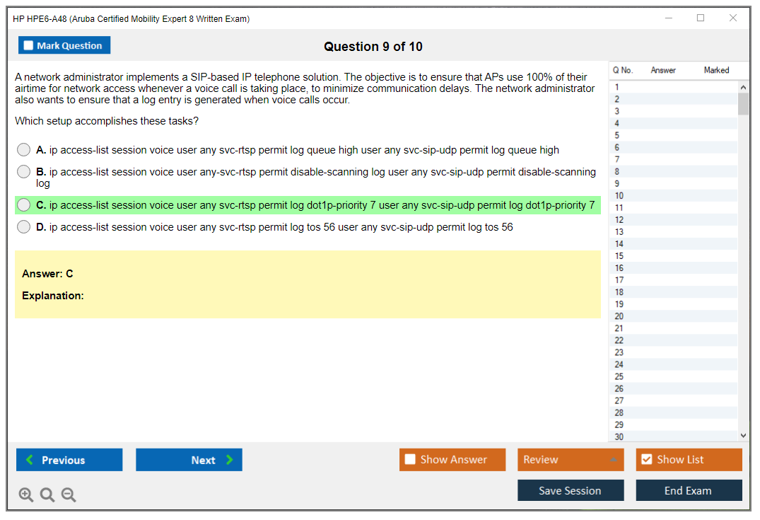 The HP HPE6-A48 (Aruba Certified Mobility Expert 8 Written Exam) is a certification exam designed to validate the knowledge and skills required to design, implement, and manage advanced Aruba Wireless Local Area Network (WLAN) solutions.