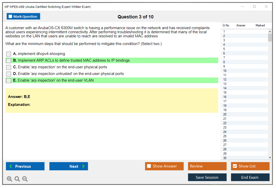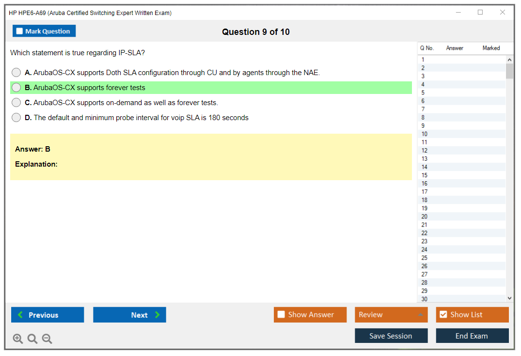 The HP HPE6-A69 (Aruba Certified Switching Expert Written Exam) is designed to validate the technical skills and knowledge required to design, implement, and troubleshoot complex network solutions using Aruba products and technologies.