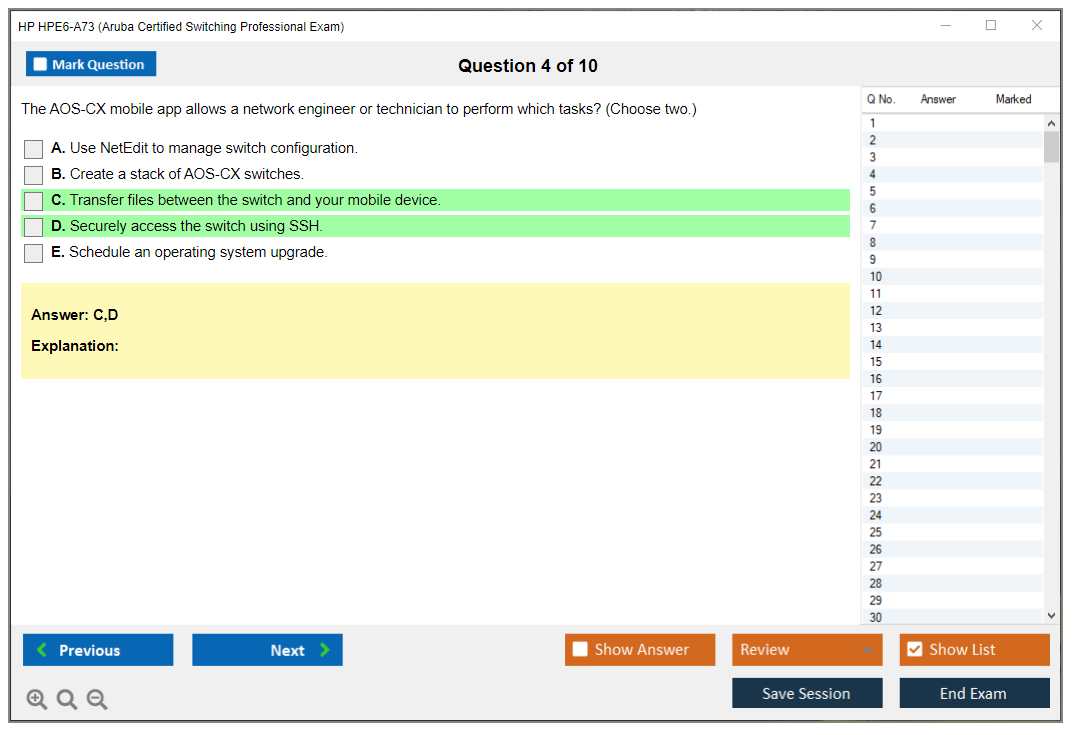 The HP HPE6-A73 (Aruba Certified Switching Professional Exam) is designed to validate the skills and knowledge required to configure, manage, and troubleshoot advanced layer-2 and layer-3 enterprise campus switching solutions using the AOS-CX operating system.