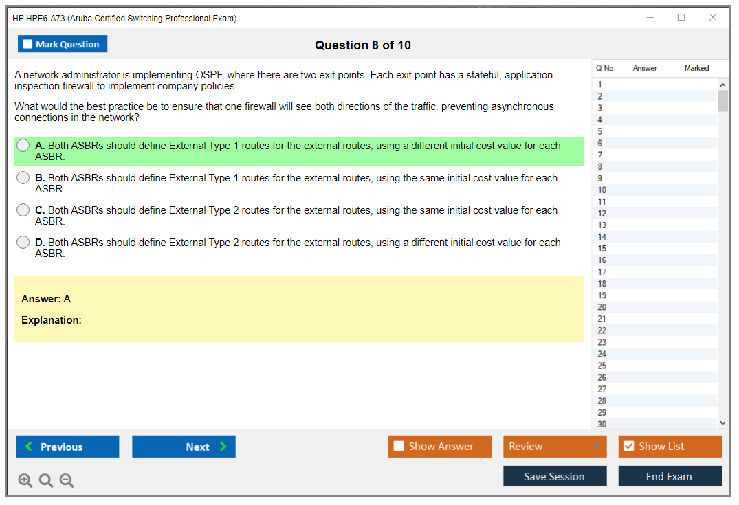The HP HPE6-A73 Exam is part of the Aruba Certified Switching Professional (ACSP) certification track, which is a step towards achieving higher-level Aruba certifications.