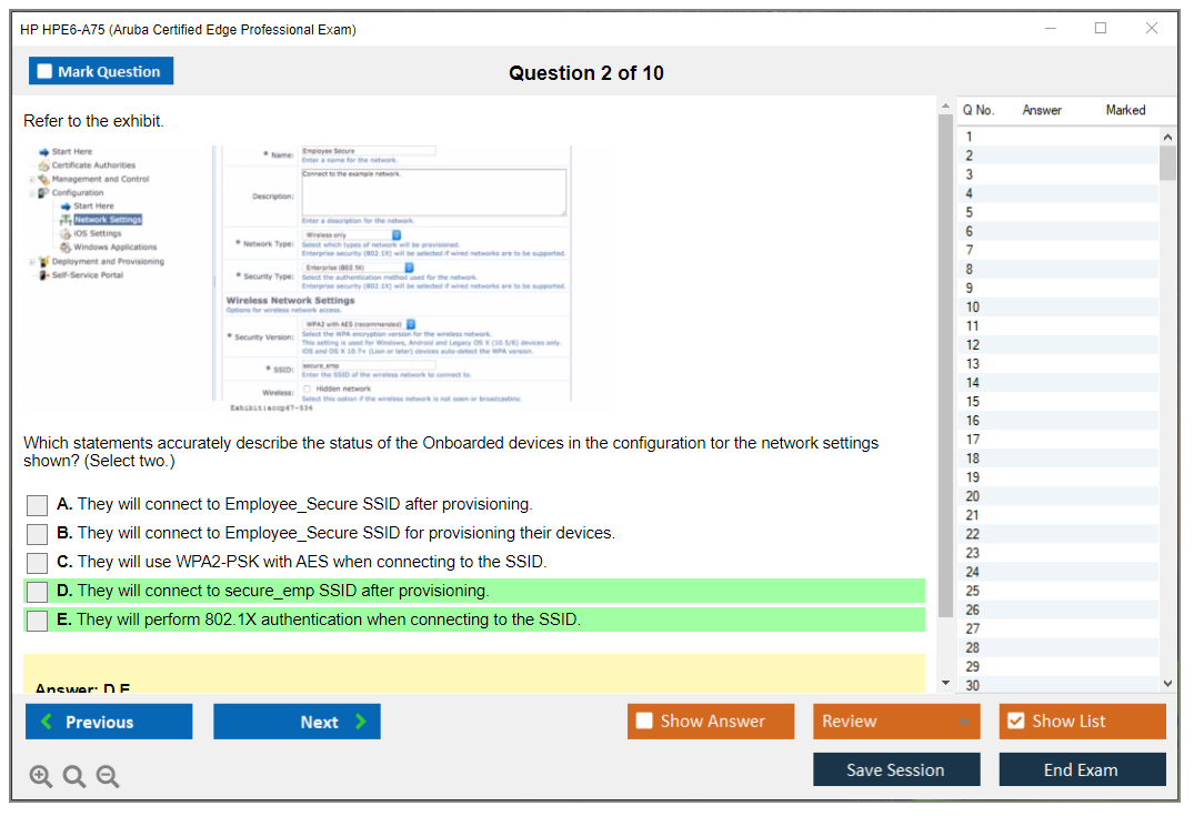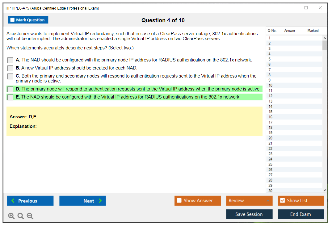The HP HPE6-A75 (Aruba Certified Edge Professional Exam) is designed for IT professionals who deploy, manage, and troubleshoot advanced Aruba wired and wireless network solutions. It validates the skills and knowledge required to implement and configure advanced Aruba solutions, including network security, mobile and IoT solutions, and advanced troubleshooting.