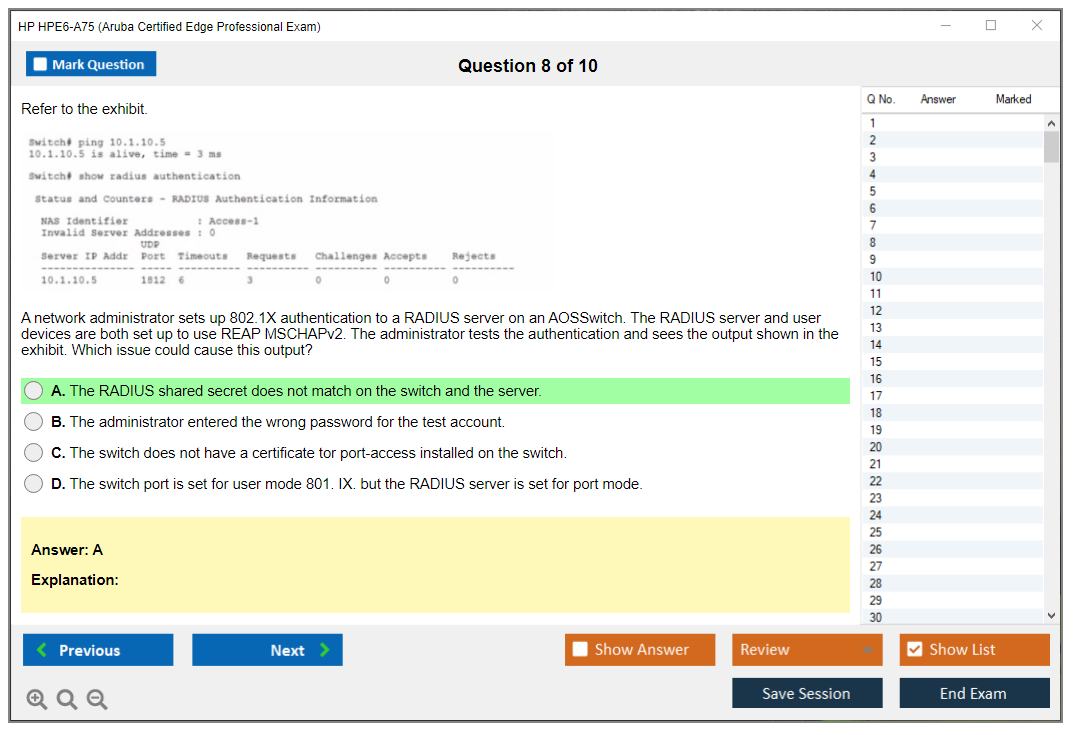 What are the Sample Questions of HP HPE6-A75 Exam?