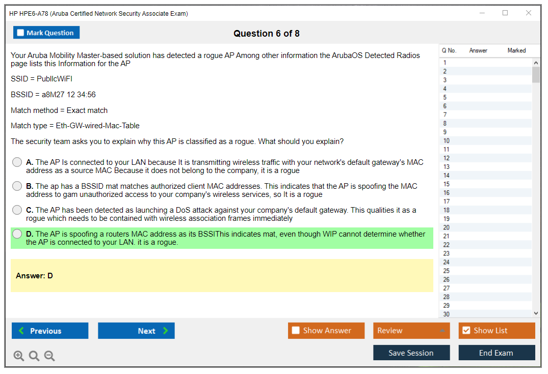 The HP HPE6-A78 (Aruba Certified Network Security Associate Exam) is designed to validate the knowledge and skills of individuals in implementing and managing Aruba network security solutions.
