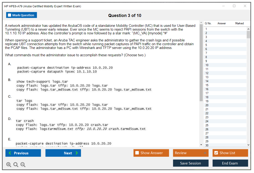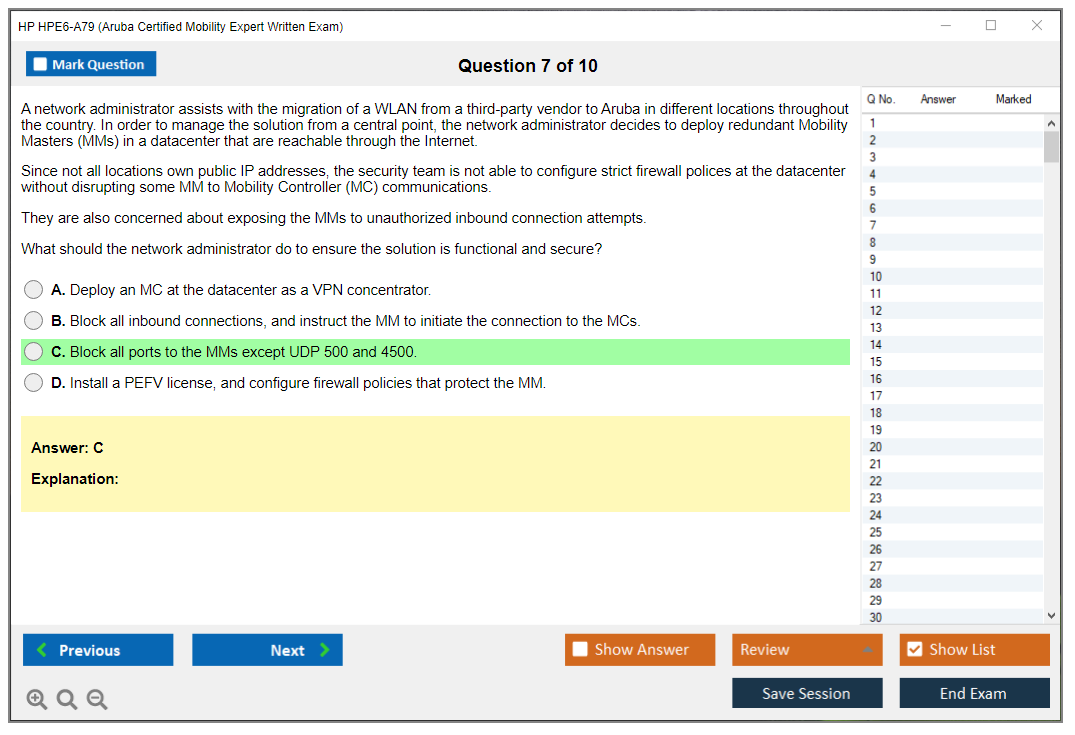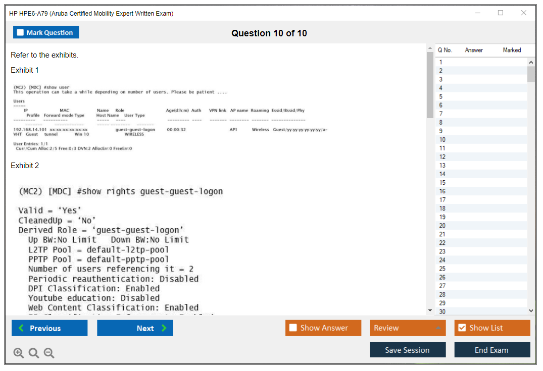 The HP HPE6-A79 exam, also known as the Aruba Certified Mobility Expert Written Exam, is designed to validate the skills and knowledge of candidates in advanced topics related to Aruba Mobility solutions. This certification is aimed at IT professionals who are responsible for the design, implementation, and management of complex mobile and wireless network solutions using Aruba products and technologies.