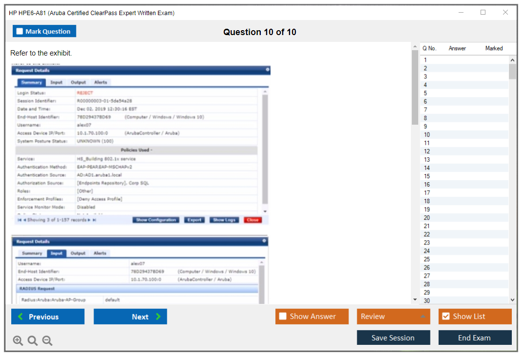 The HP HPE6-A81 (Aruba Certified ClearPass Expert Written Exam) is designed to validate the knowledge and skills required to design, implement, and troubleshoot ClearPass solutions. It is aimed at IT professionals who work with Aruba ClearPass solutions.