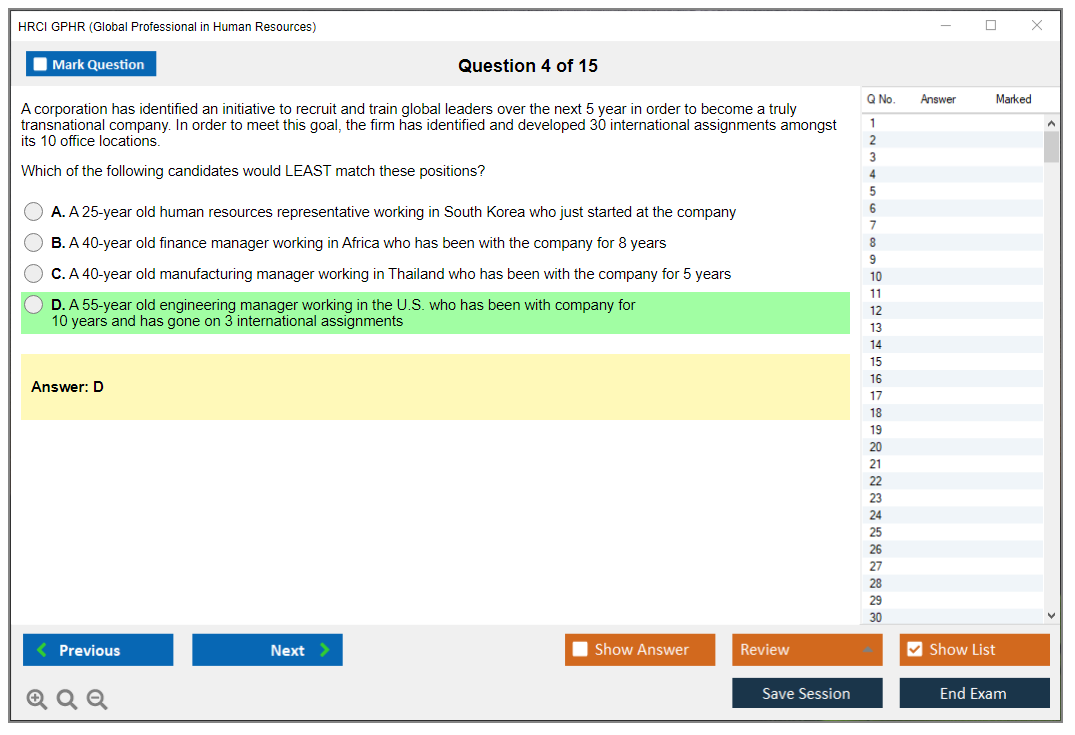 The HRCI GPHR (Global Professional in Human Resource) Exam is a certification exam designed for HR professionals who manage HR responsibilities in a global marketplace. It validates expertise in multinational HR responsibilities, including strategies of globalization, development of HR policies and initiatives that support global organizational goals.