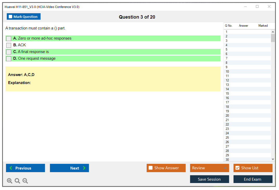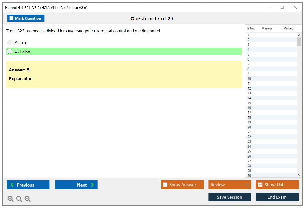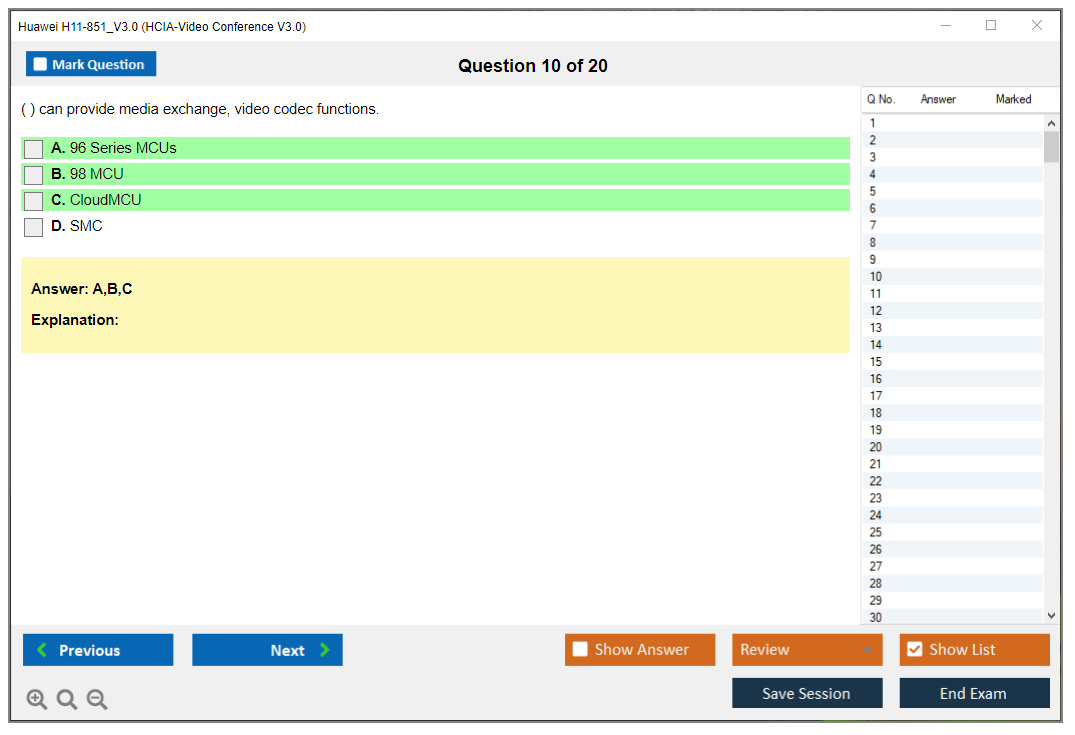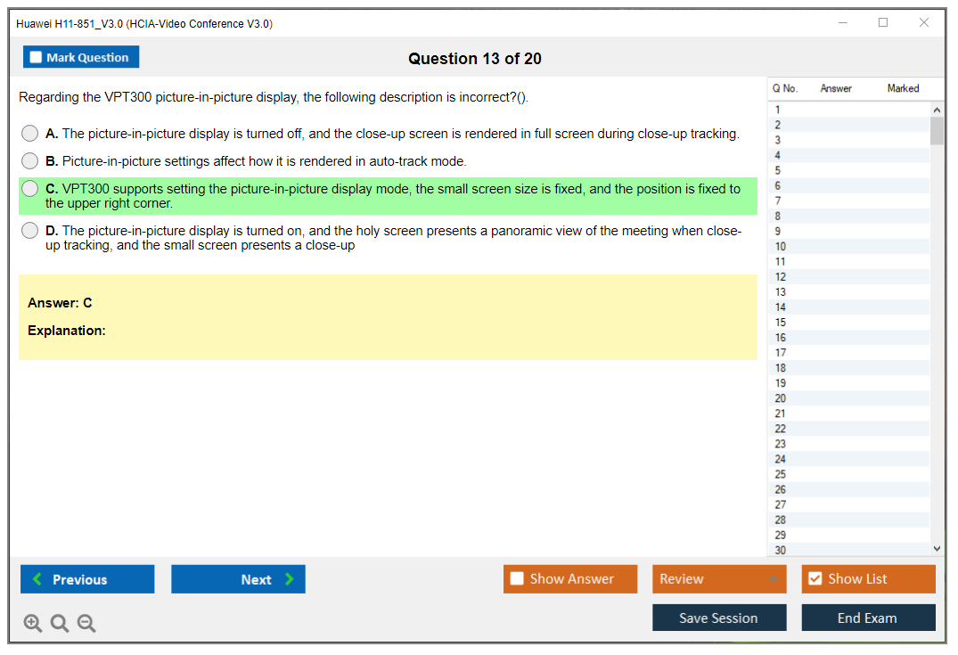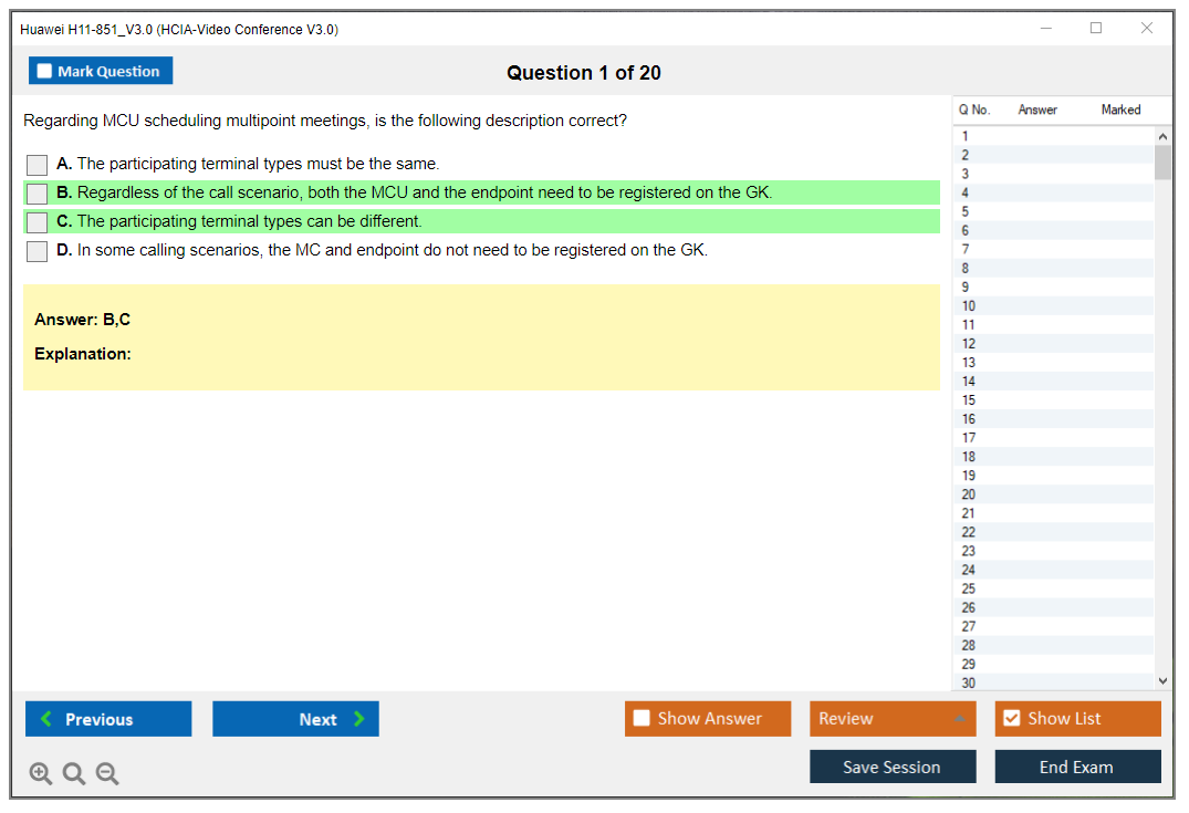 The Huawei H11-851_V3.0 (HCIA-Video Conference V3.0) Exam is designed to validate the knowledge and skills of professionals in the field of video conferencing. It covers various aspects of video conferencing technologies, including system installation, configuration, management, and troubleshooting.