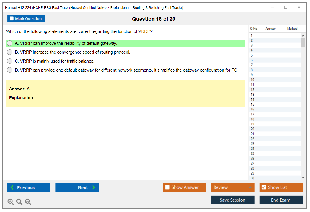 The Huawei H12-224 Exam is part of the HCNP-R&S certification track, which is designed to validate advanced skills in routing and switching. It is a step up from the HCIA-R&S certification and can lead to the HCIE-R&S certification.