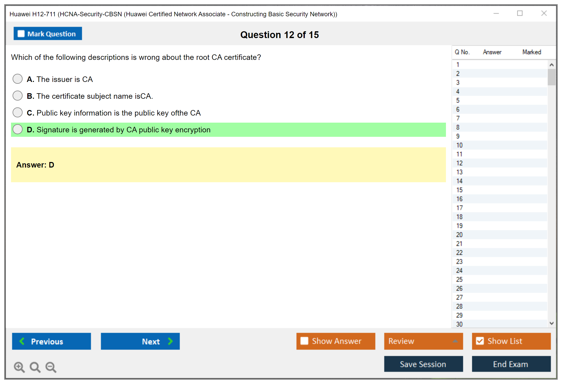 Note: Huawei H12-711 (HCNA-Security-CBSN (Huawei Certified Network Associate - Constructing Basic Security Network)) will not receive any new updates.