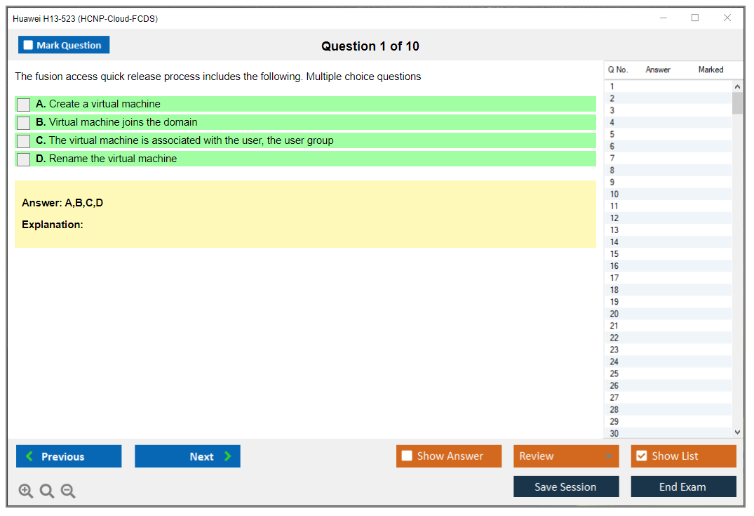 The Huawei H13-523 (HCNP-Cloud-FCDS) exam is a certification exam designed to validate the skills and knowledge of cloud service development and deployment. It focuses on cloud computing, storage, and network technologies, as well as cloud service solutions and best practices.