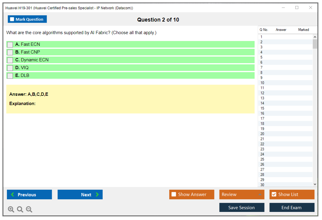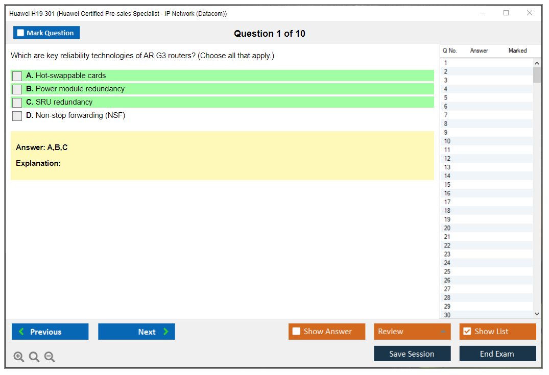 The question format of the Huawei H19-301 Exam includes multiple-choice questions, multiple response questions, and drag-and-drop questions.
