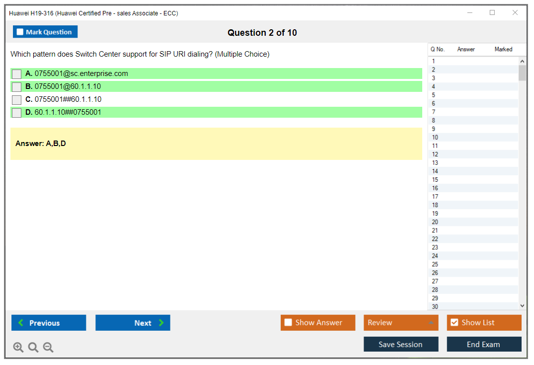 The question format of the Huawei H19-316 Exam includes multiple-choice questions, single-answer questions, and scenario-based questions.