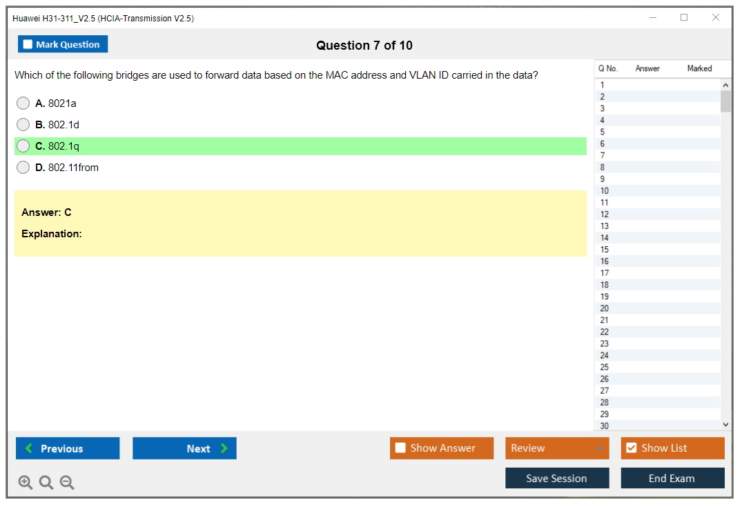 The Huawei H31-311_V2.5 Exam is part of the HCIA-Transmission certification, which validates the candidate's understanding and ability to manage transmission networks. It covers various aspects of transmission technology, including network structure, equipment, and troubleshooting.