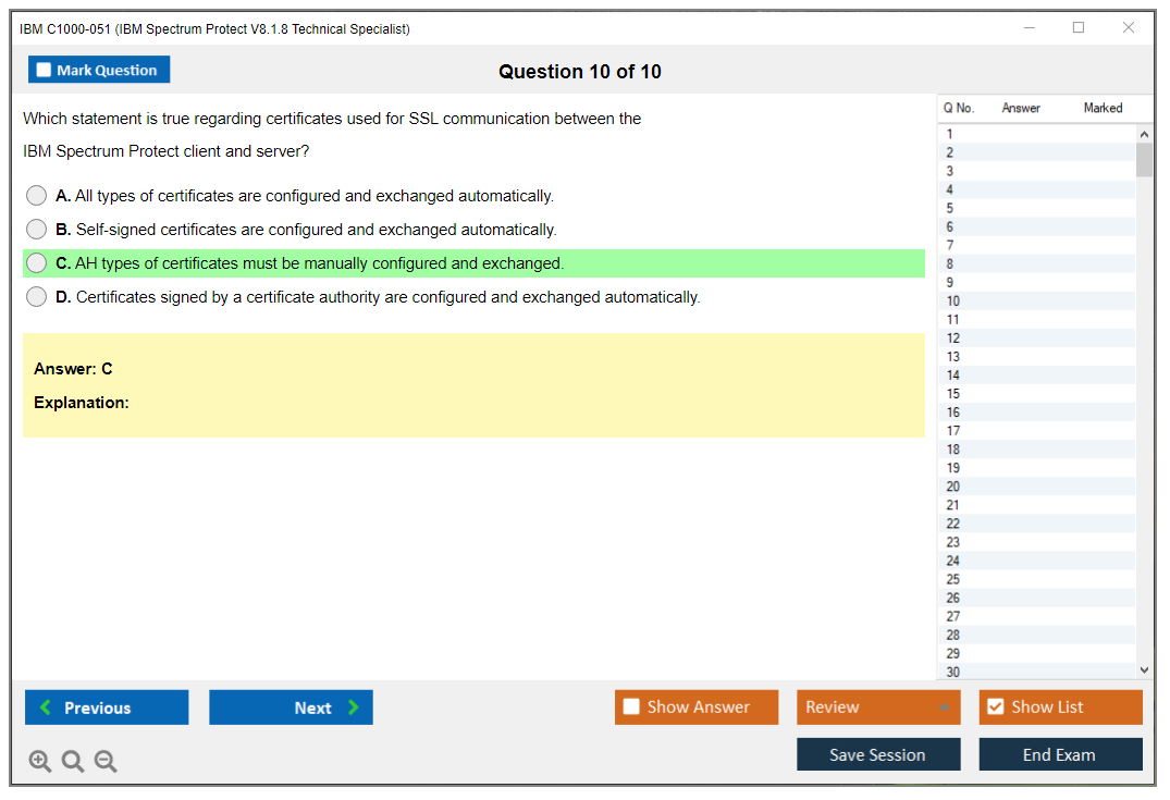 Note: IBM C1000-051 (IBM Spectrum Protect V8.1.8 Technical Specialist) will not receive any new updates.