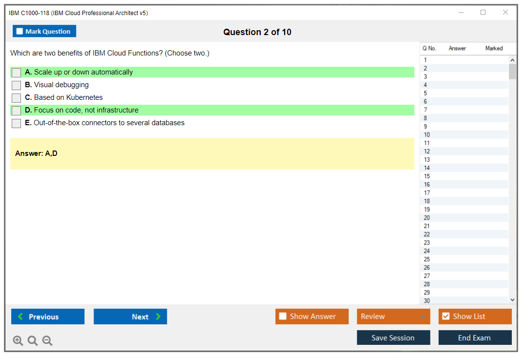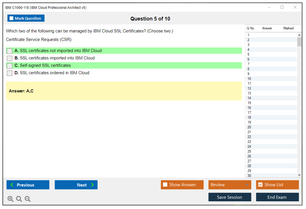 The IBM C1000-118 (IBM Cloud Professional Architect v5) exam is an assessment for professionals aiming to demonstrate their expertise in IBM Cloud solutions. It covers topics such as cloud architecture, design principles, and best practices for implementing IBM Cloud services.
