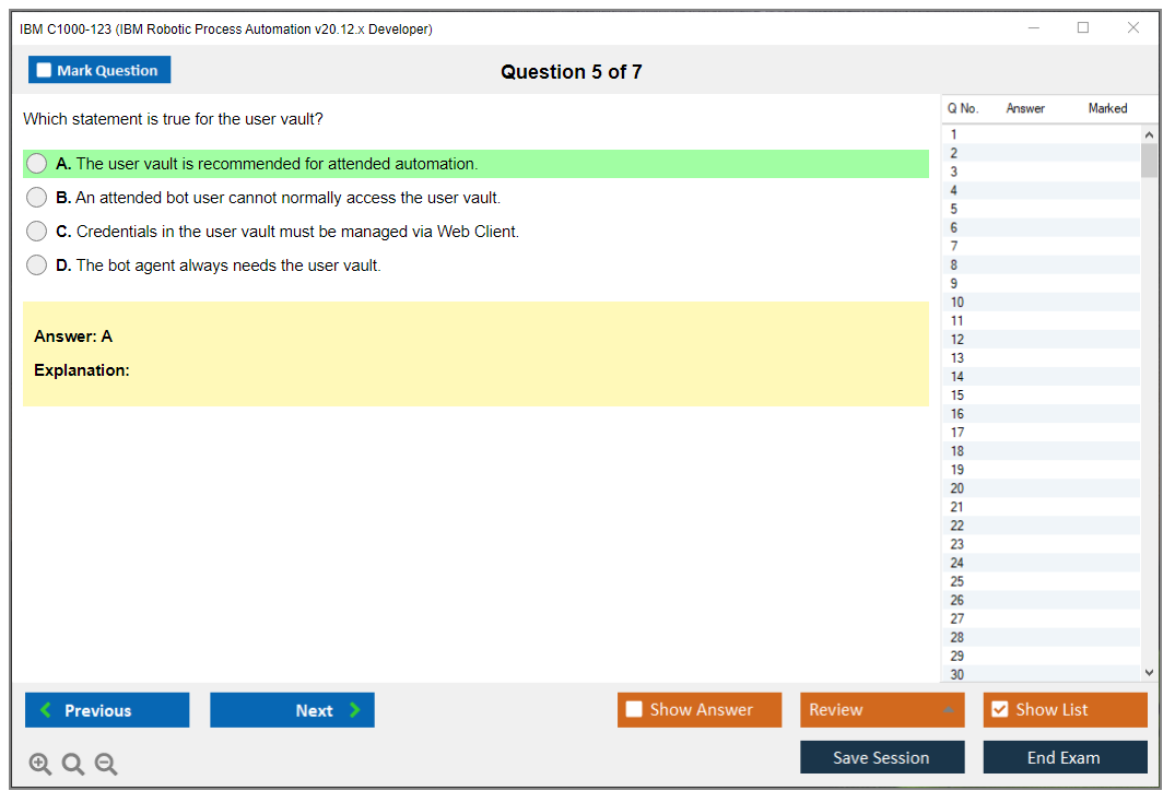 The IBM C1000-123 (IBM Robotic Process Automation v20.12.x Developer) Exam is designed to validate the skills and knowledge of individuals in developing and implementing robotic process automation solutions using IBM's RPA technology.