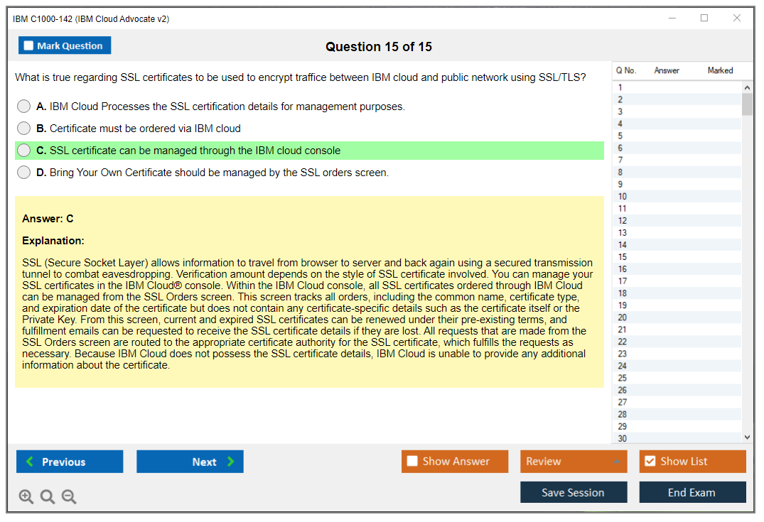 The IBM C1000-142 Exam assesses the competency of candidates in understanding and implementing IBM Cloud solutions. It is intended for professionals who are involved in the design, planning, and management of IBM Cloud services.