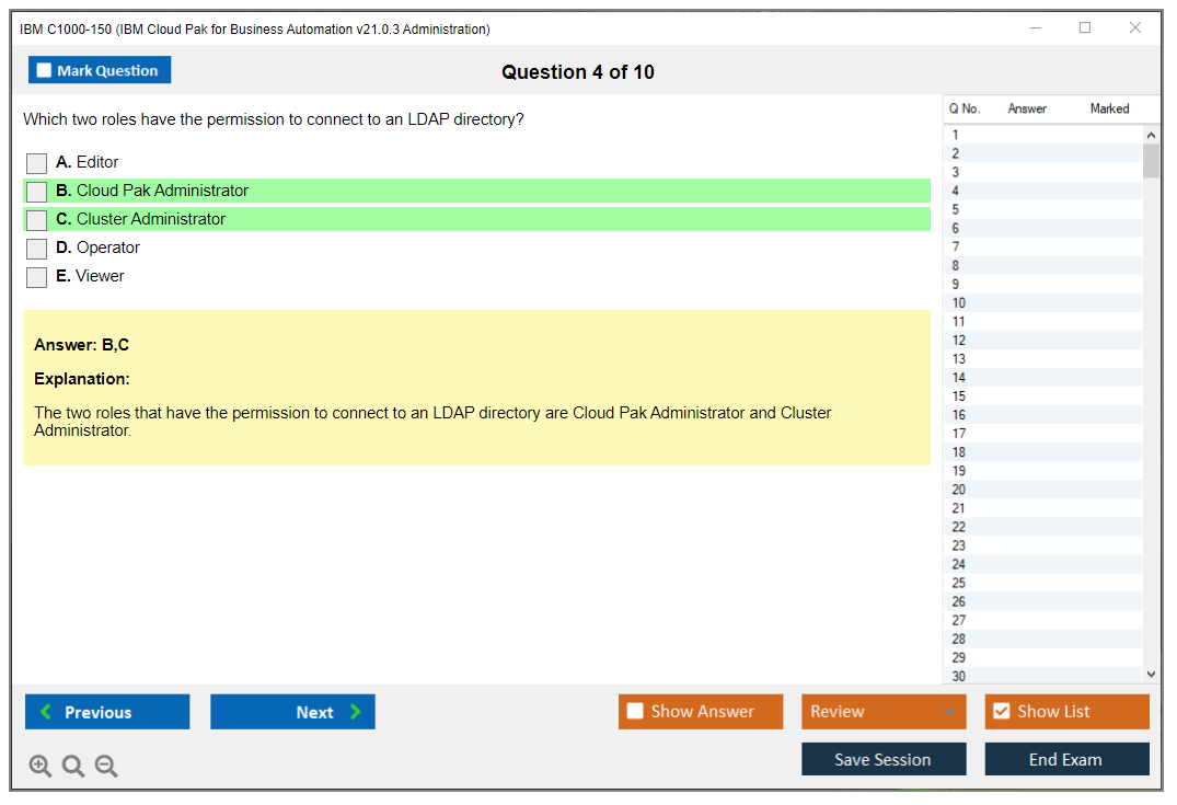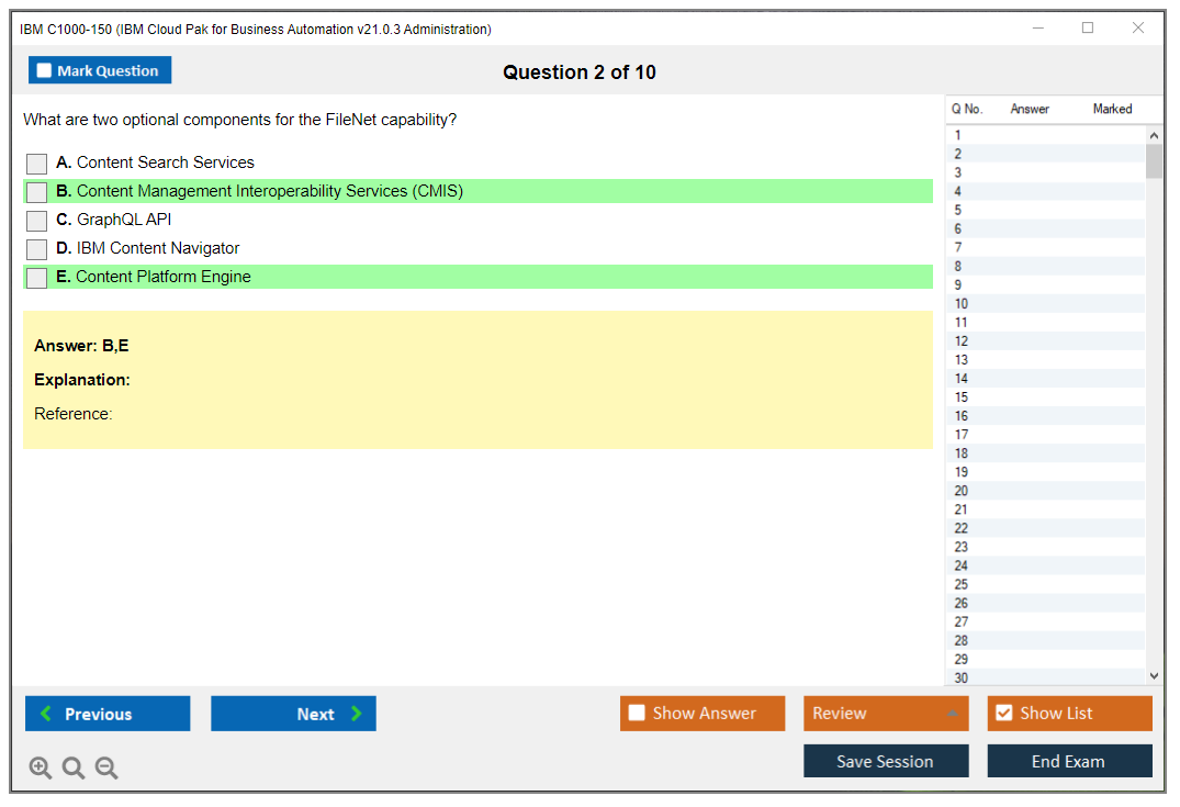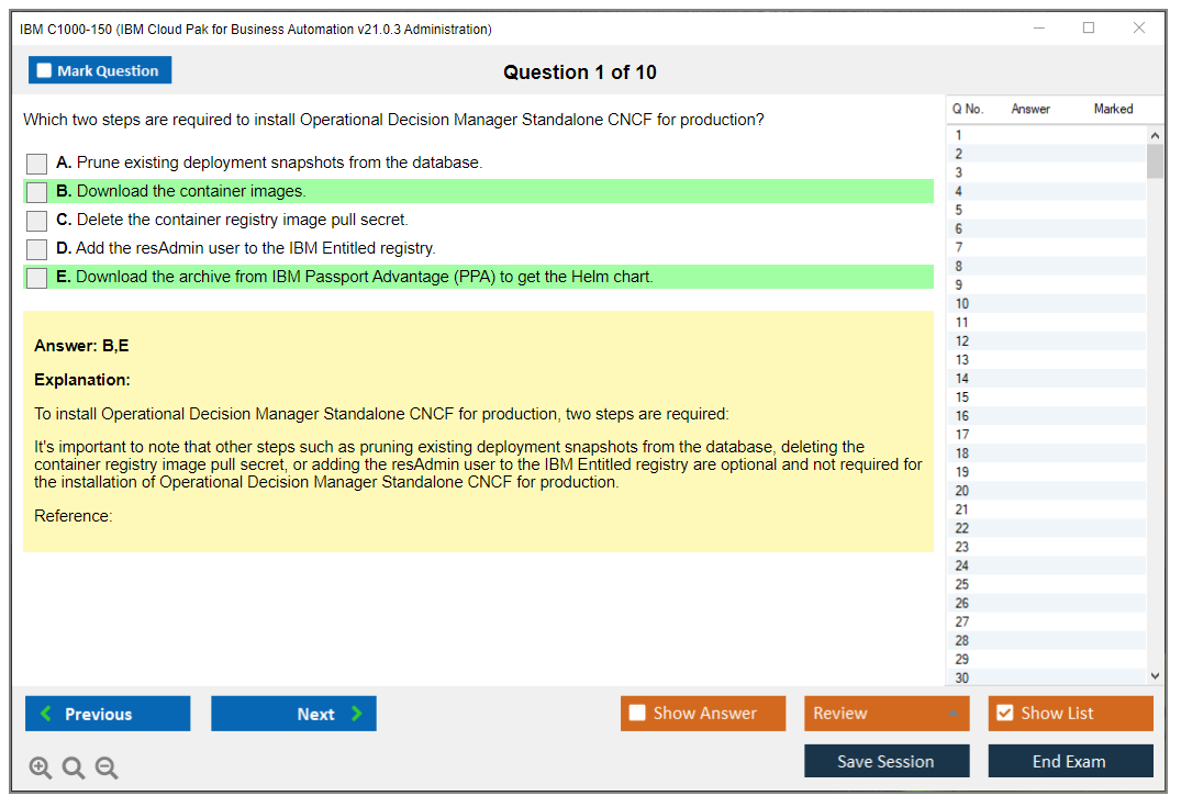 The IBM C1000-150 (IBM Cloud Pak for Business Automation v21.0.3 Administration) exam is designed to validate the skills and knowledge required to administer the IBM Cloud Pak for Business Automation platform. This certification focuses on the capabilities of the platform, including installation, configuration, management, and troubleshooting.