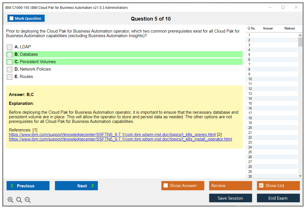 There are no formal prerequisites for the IBM C1000-150 Exam, but it is recommended that candidates have practical experience and knowledge of the IBM Cloud Pak for Business Automation platform.