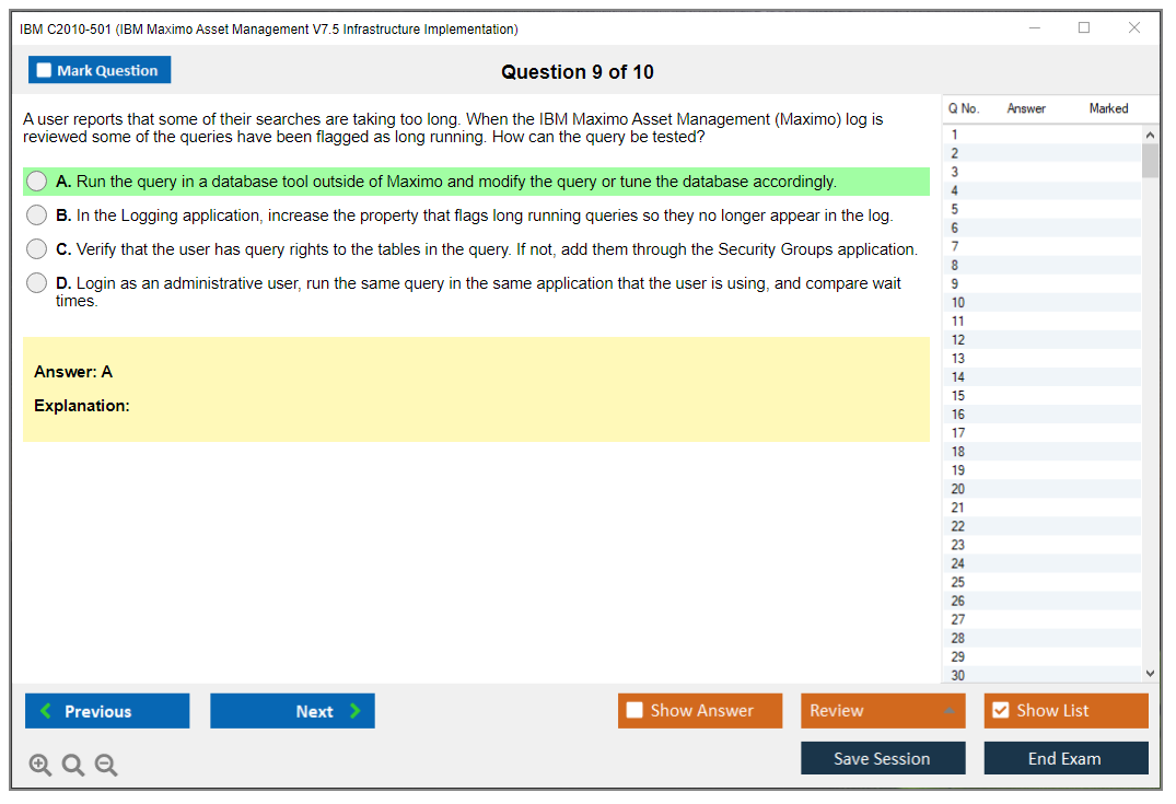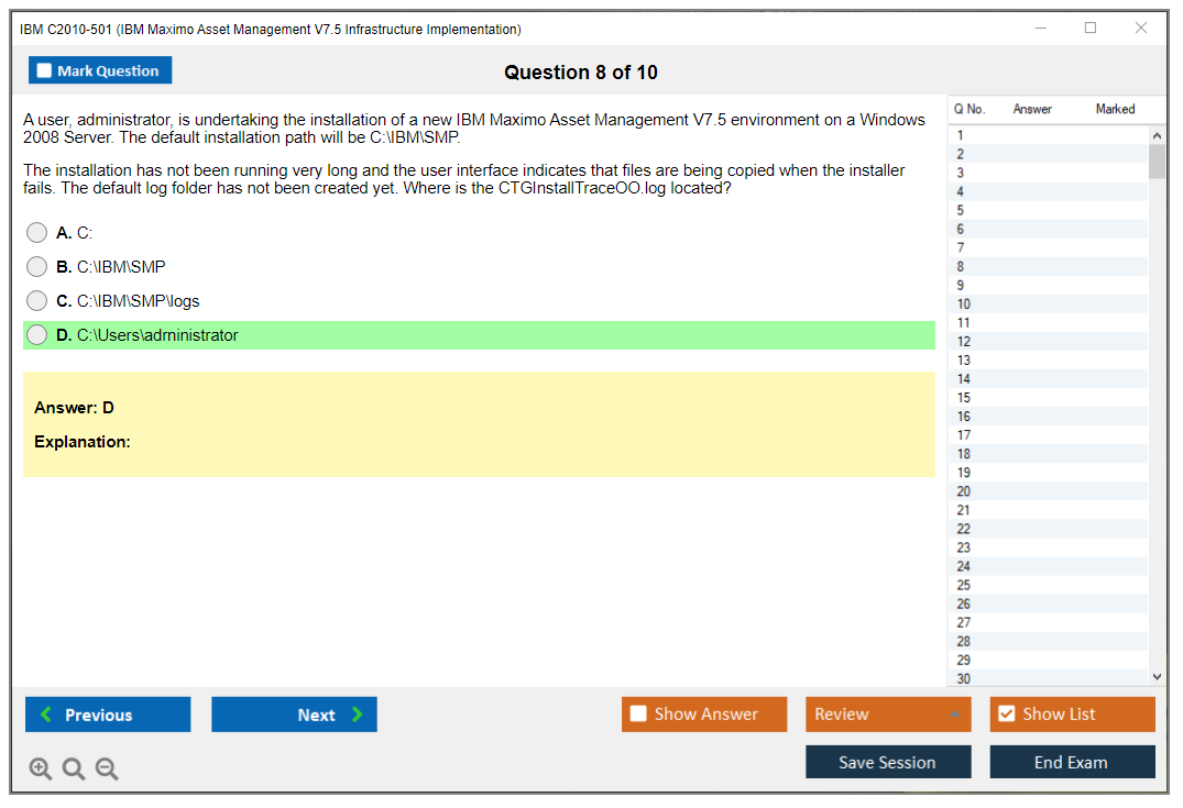 The IBM C2010-501 exam, also known as IBM Maximo Asset Management V7.5 Infrastructure Implementation, is designed to test the candidate's knowledge and skills in implementing IBM Maximo Asset Management V7.5 infrastructure.
