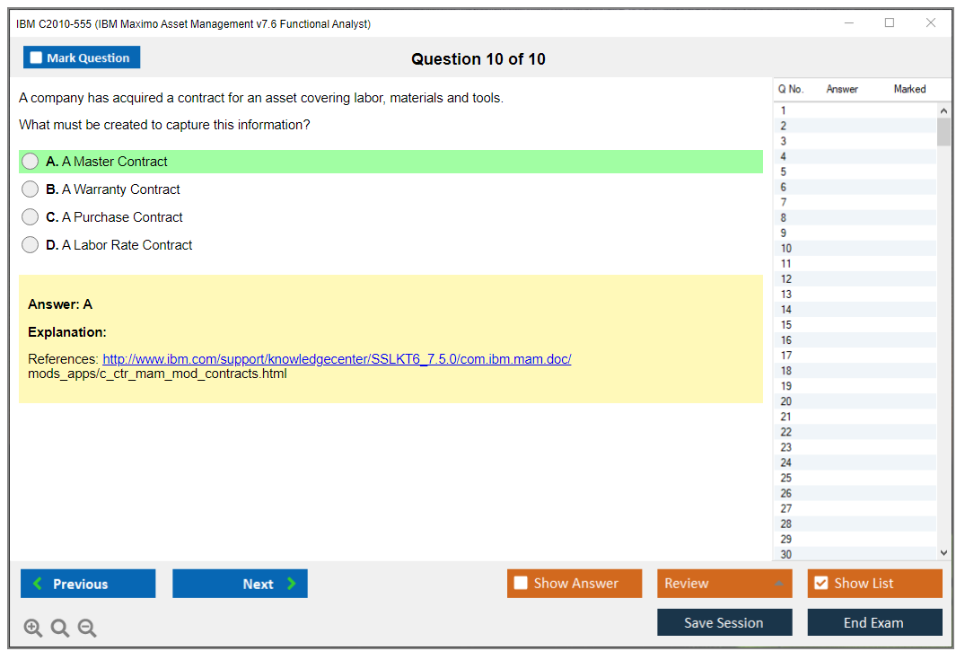 The IBM C2010-555 (IBM Maximo Asset Management v7.6 Functional Analyst) exam is designed to validate the skills and knowledge of professionals in configuring and using IBM Maximo Asset Management v7.6. It covers various aspects of asset management, including work management, inventory, procurement, and preventive maintenance.