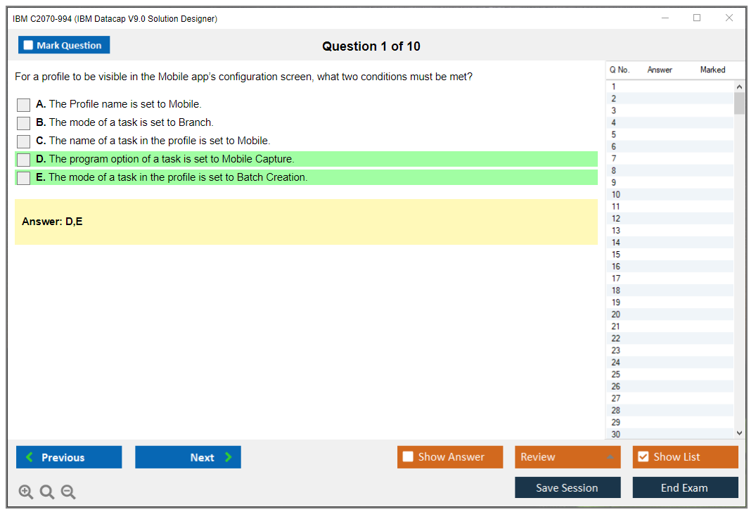 The IBM C2070-994 (IBM Datacap V9.0 Solution Designer) Exam is designed to test the knowledge and skills of individuals in designing and implementing IBM Datacap solutions. This certification validates the candidate's ability to effectively use IBM Datacap features and functionalities to automate data capture and document processing.