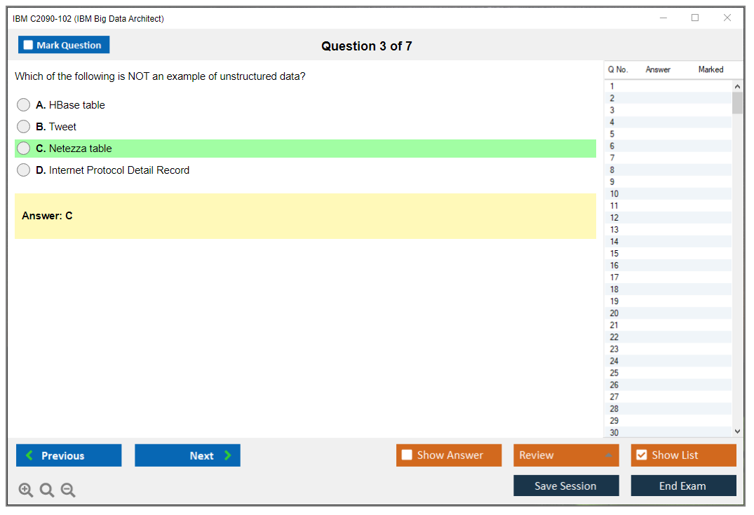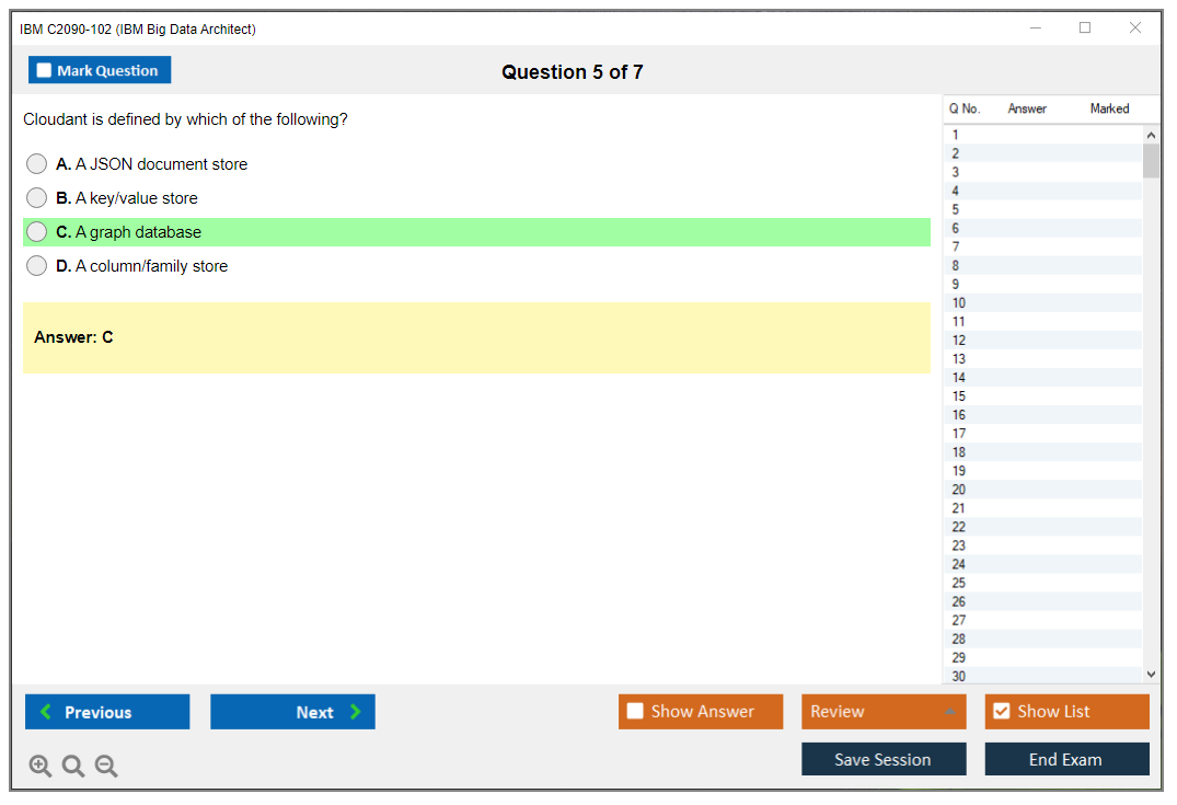 The IBM C2090-102 exam, also known as the IBM Big Data Architect exam, is designed to validate the skills and knowledge of professionals in designing and implementing big data solutions using IBM technologies and tools.