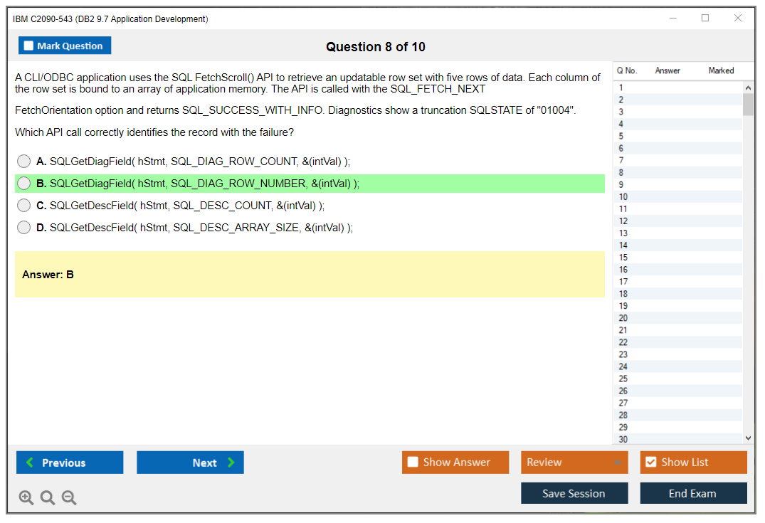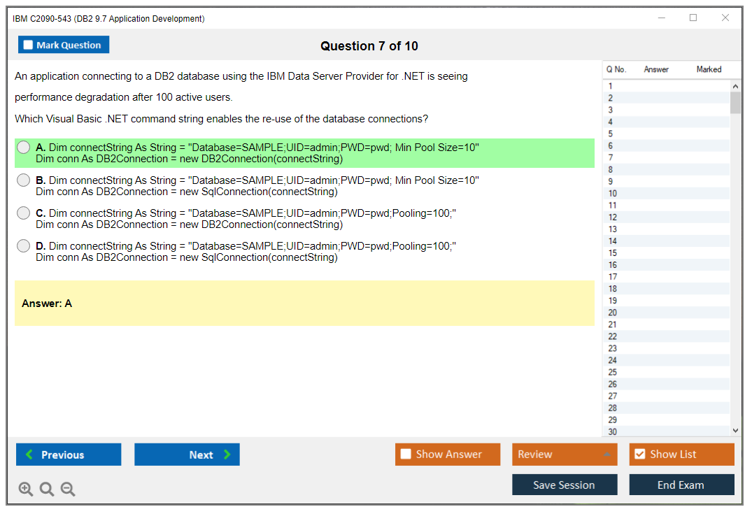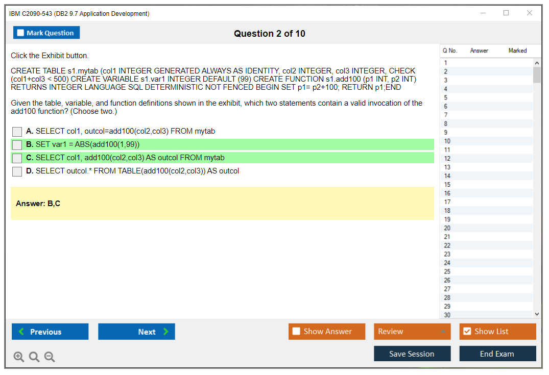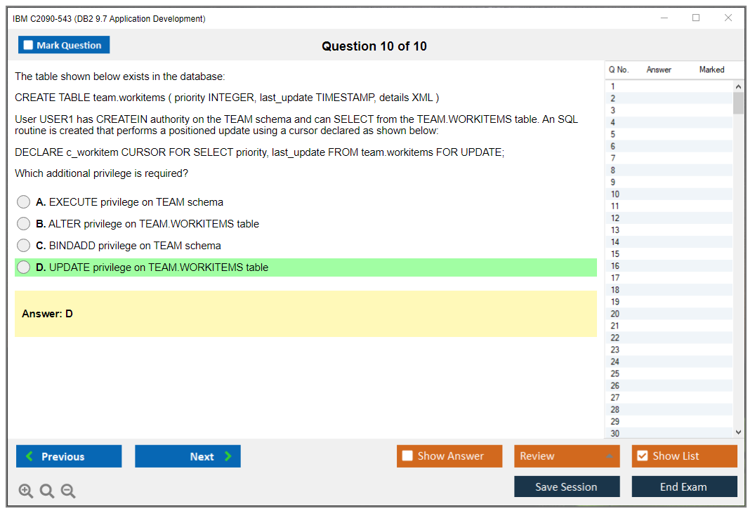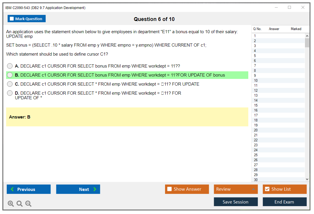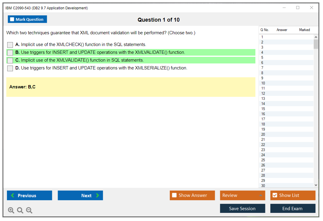 The IBM C2090-543 (DB2 9.7 Application Development) Exam is designed to assess a candidate's proficiency in developing applications using IBM's DB2 9.7 database software. The exam tests skills in areas such as SQL, XML, stored procedures, and more.