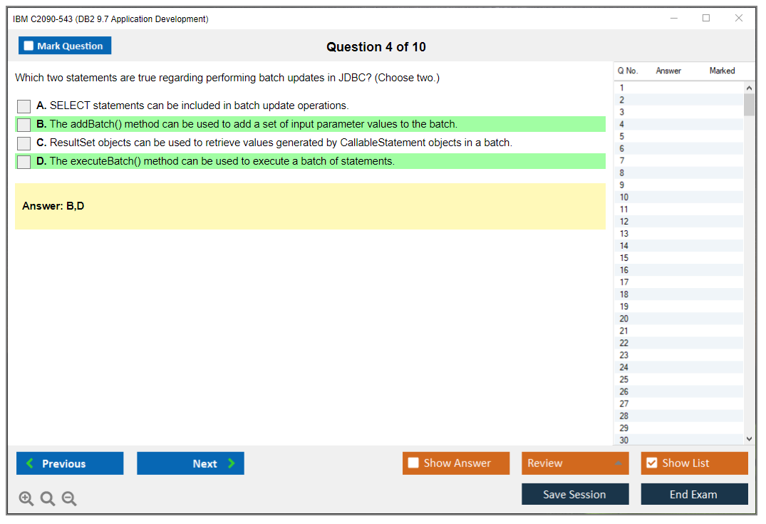The question format of the IBM C2090-543 Exam includes multiple-choice and multiple-response questions.